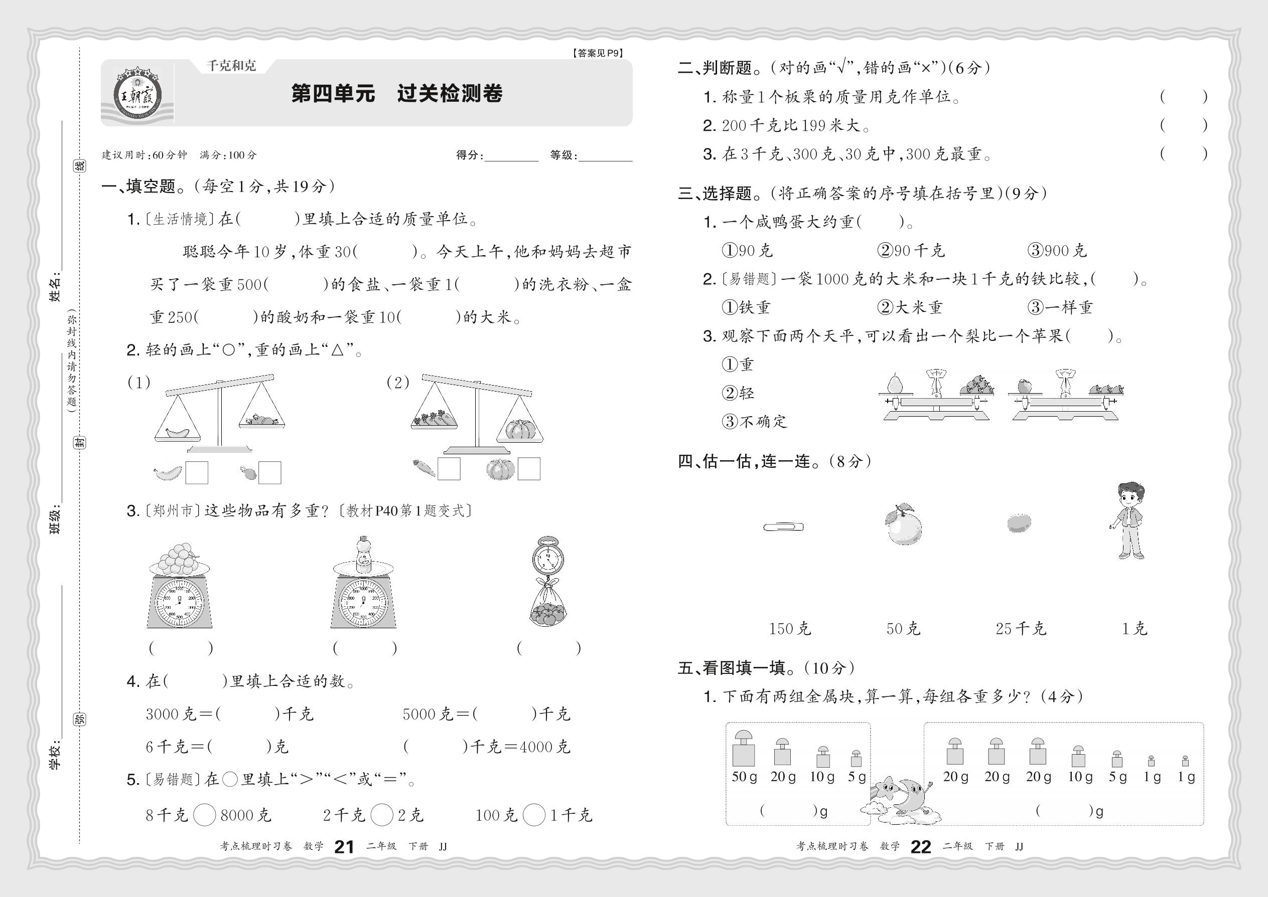 二年级数学冀教版下册单元卷