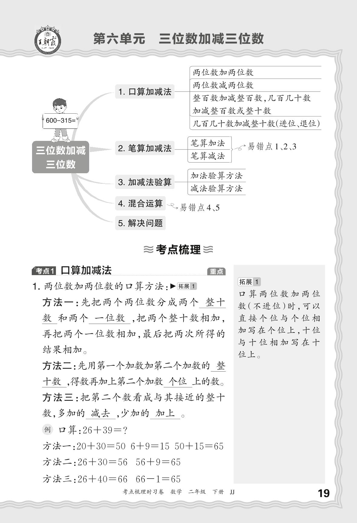 2024春下册二年级数学冀教版 考点梳理手册——第六单元 三位数加减三位数