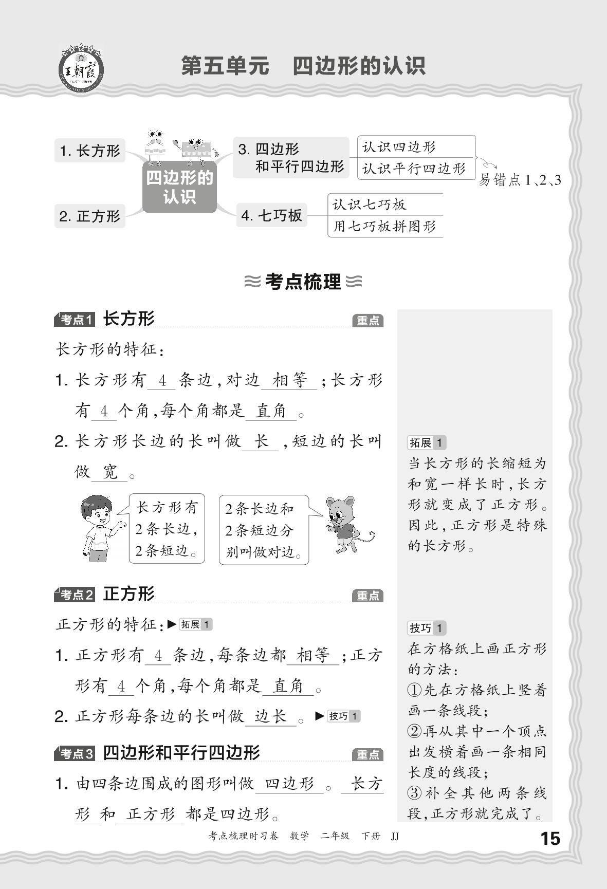 2024春下册二年级数学冀教版 考点梳理手册——第五单元 四边形的认识