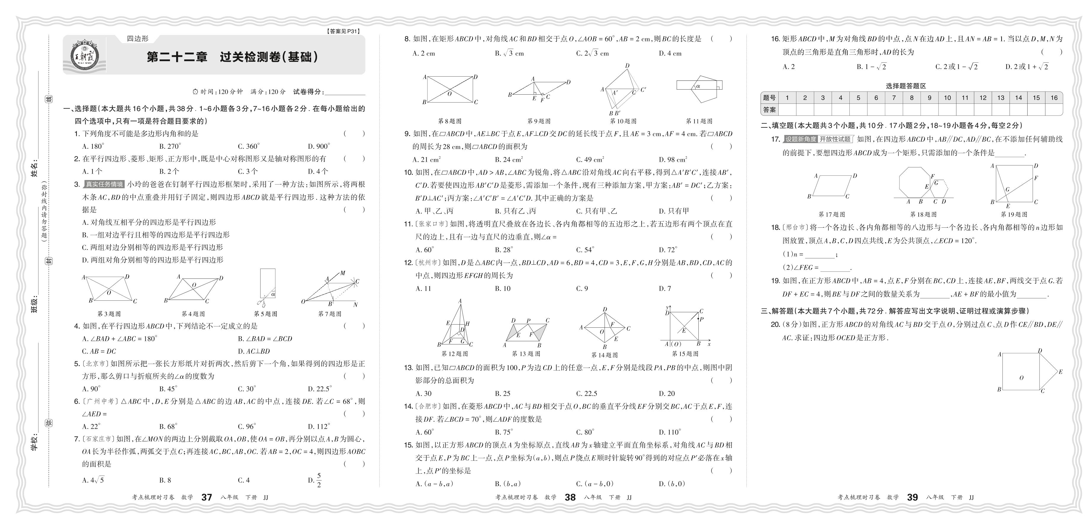 2024春下册八年级数学冀教版 第二十二章 过关检测卷(基础)