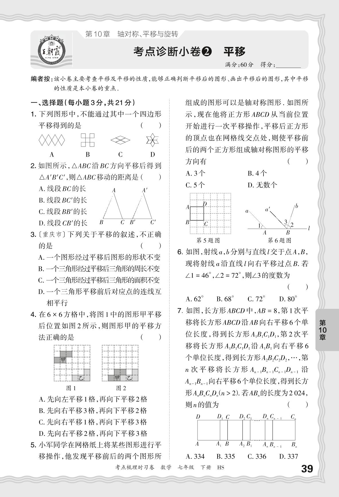 2024春下册七年级数学华师版 第10章 考点诊断小卷 平移【2】