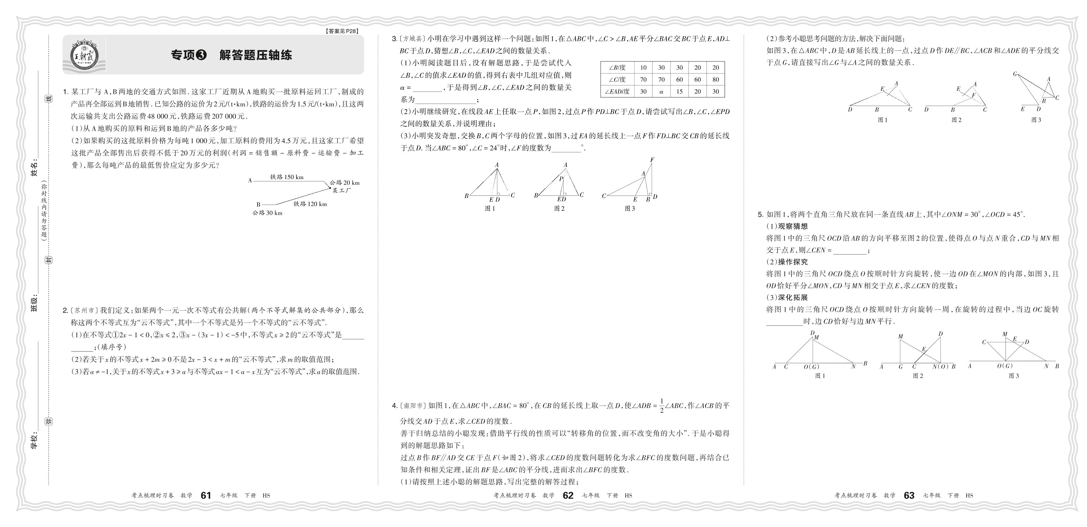 2024春下册七年级数学华师版 期末专项卷KD版·解答题压轴练【3】
