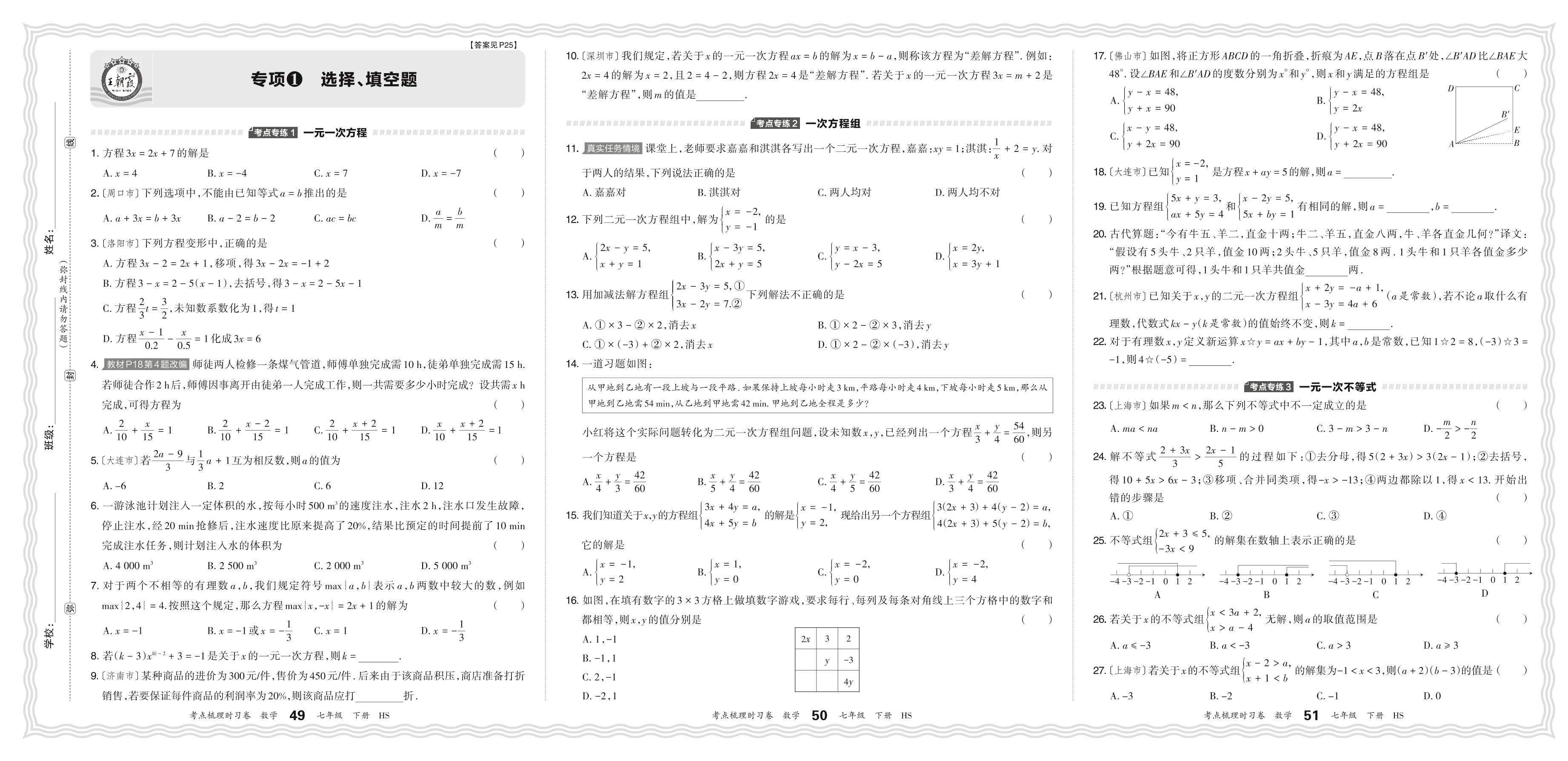 2024春下册七年级数学华师版 期末专项卷KD版·选择、填空题【1】