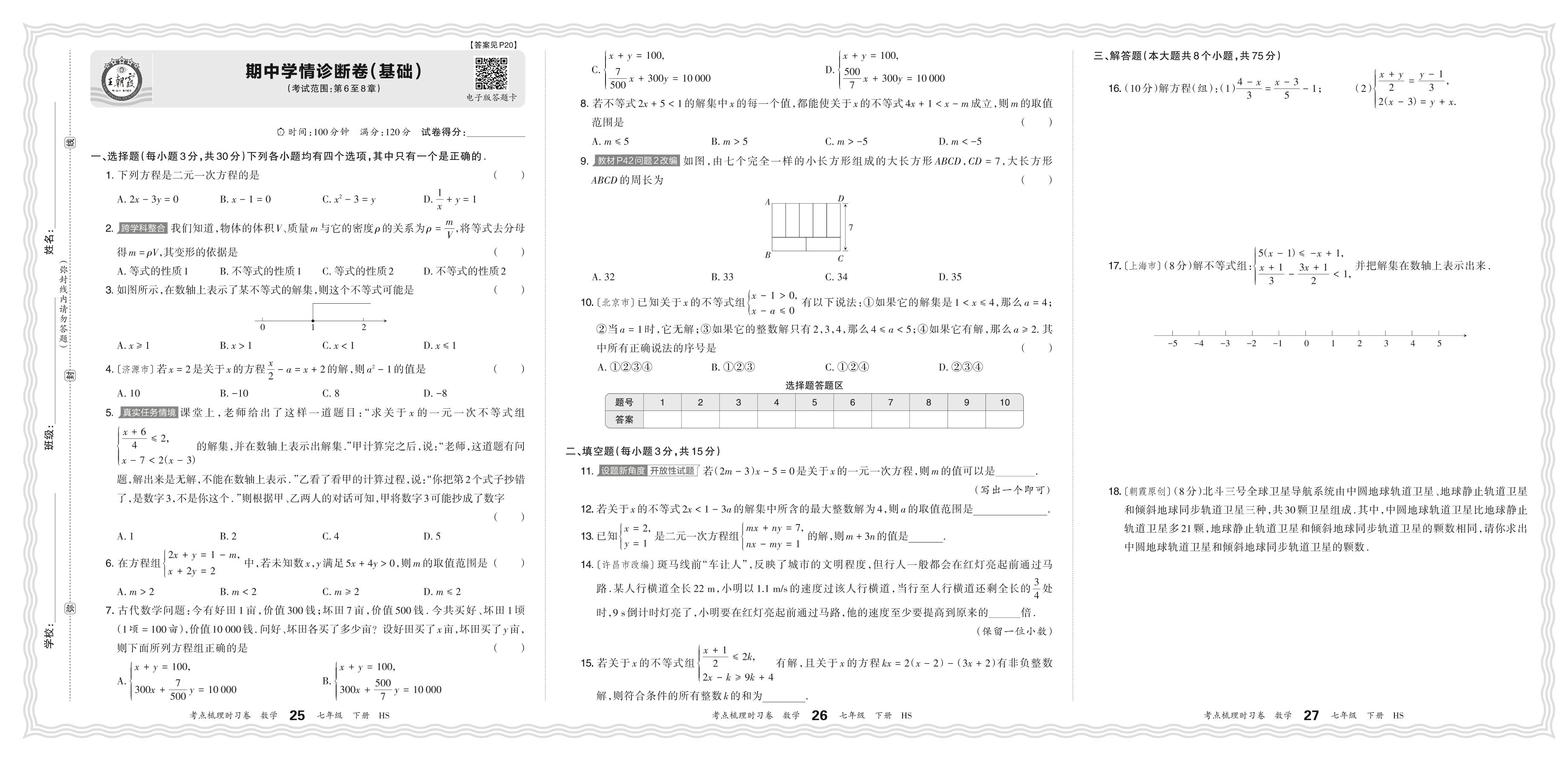 2024春下册七年级数学华师版 期中学情诊断卷(基础)