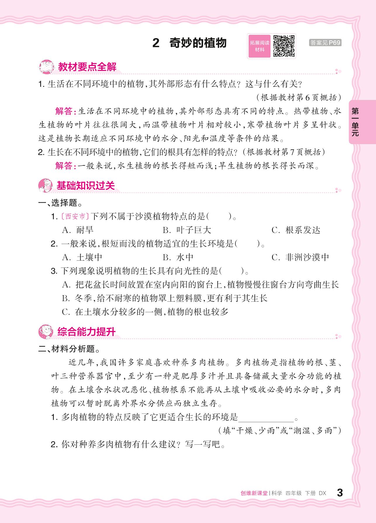 2024春下册四年级科学大象版 第一单元 生命世界——2. 奇妙的植物
