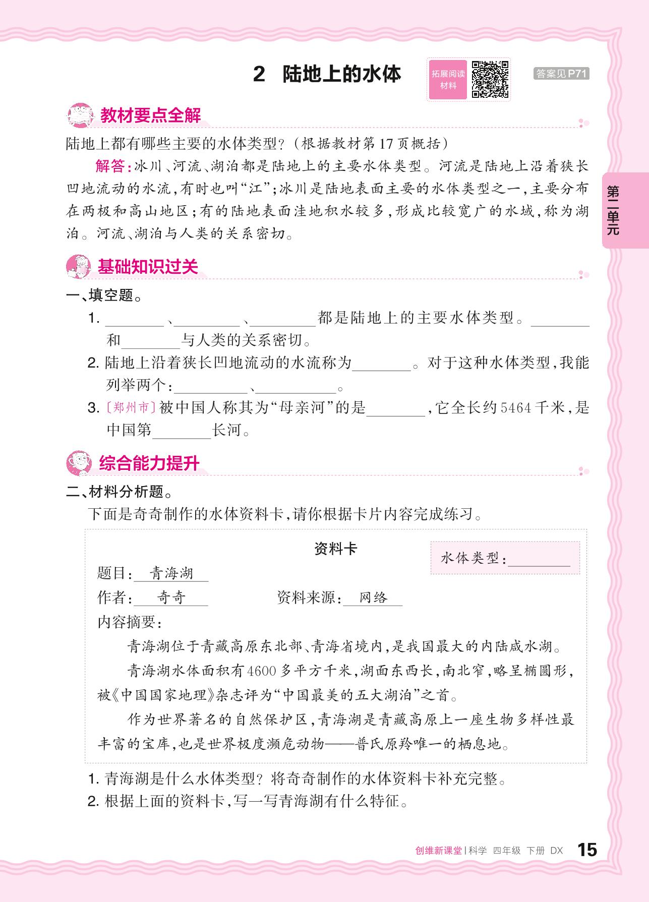 2024春下册四年级科学大象版 第二单元 自然界的水——2. 陆地上的水体
