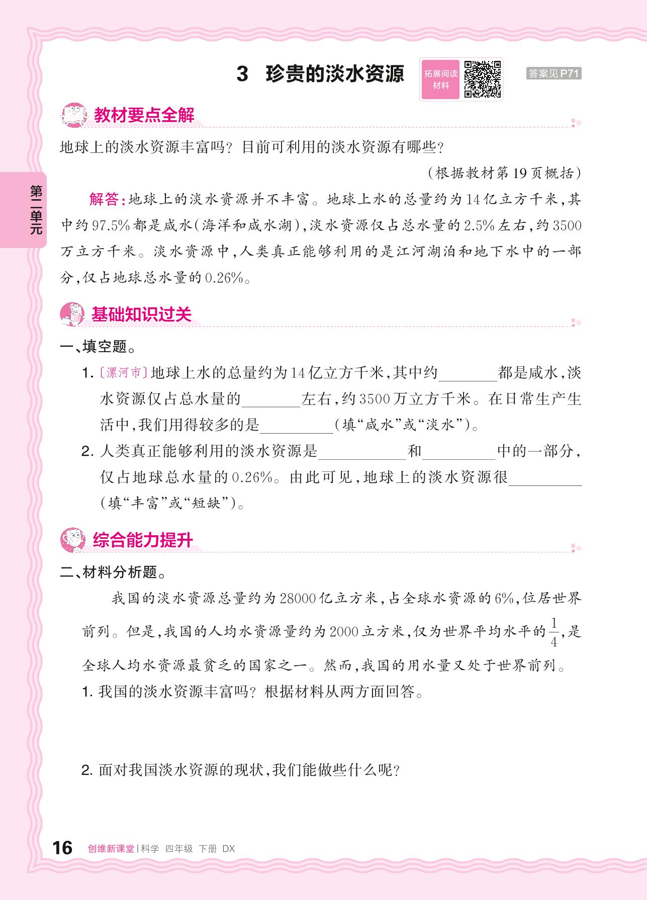 2024春下册四年级科学大象版 第二单元 自然界的水——3. 珍贵的淡水资源