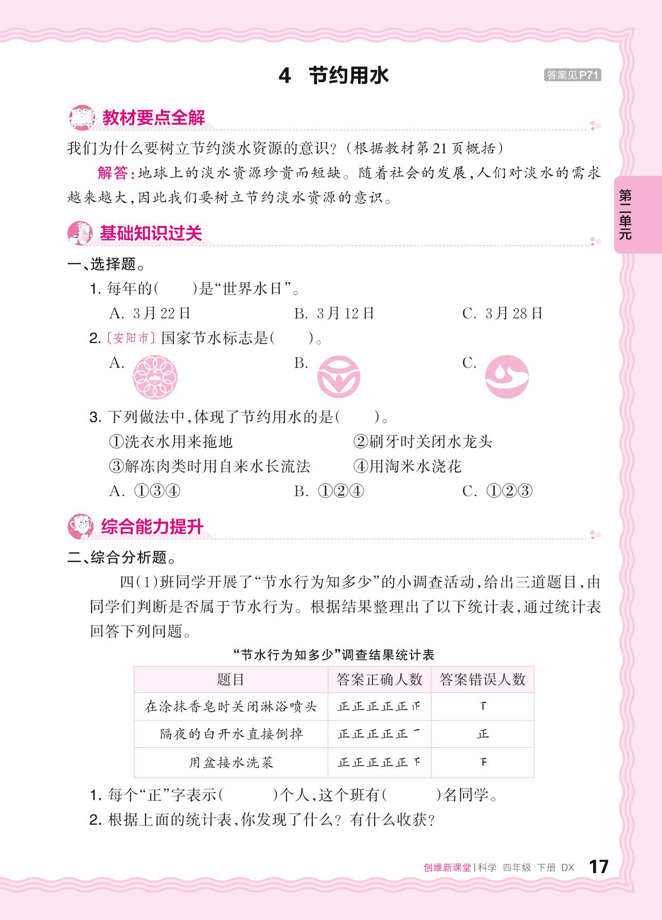 2024春下册四年级科学大象版 第二单元 自然界的水——4. 节约用水