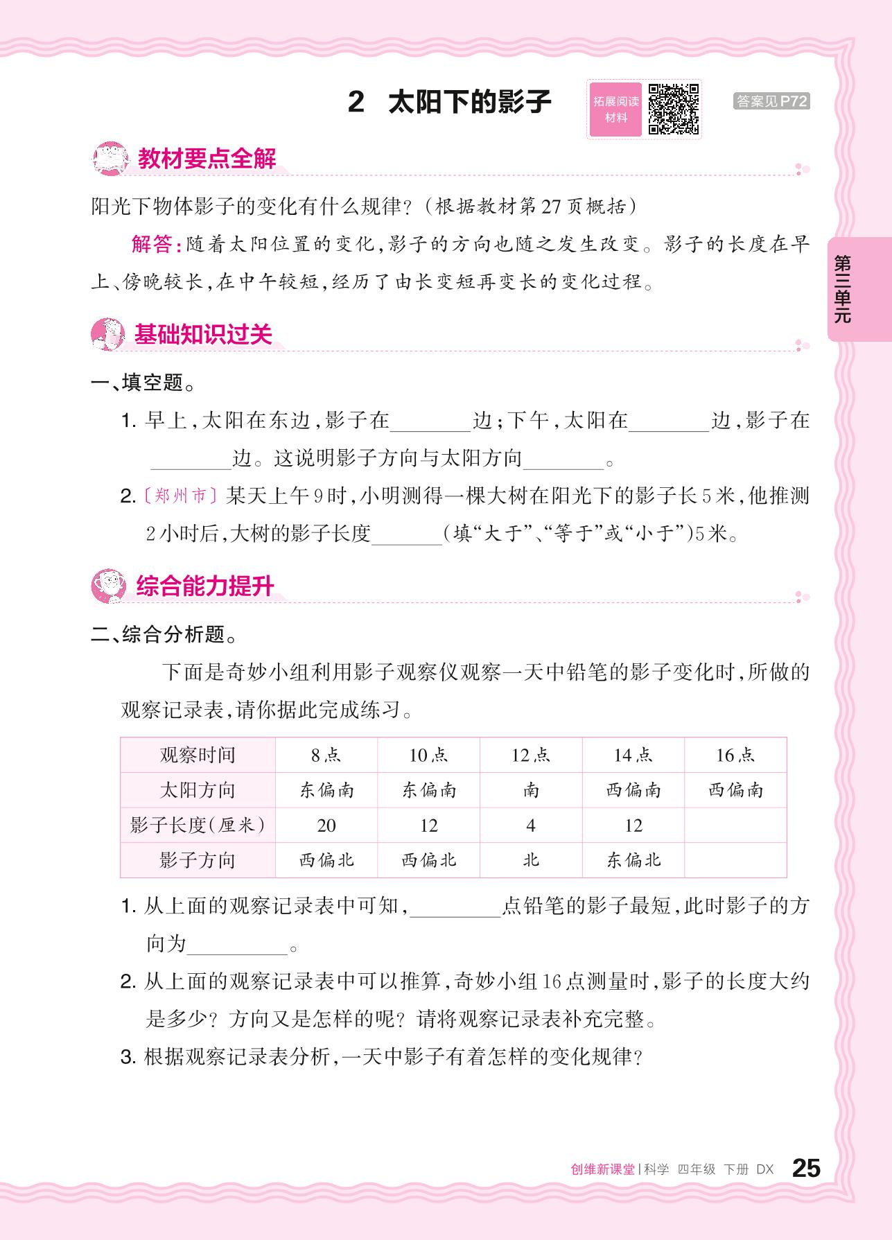 2024春下册四年级科学大象版 第三单元 太阳、地球和月球——2. 太阳下的影子