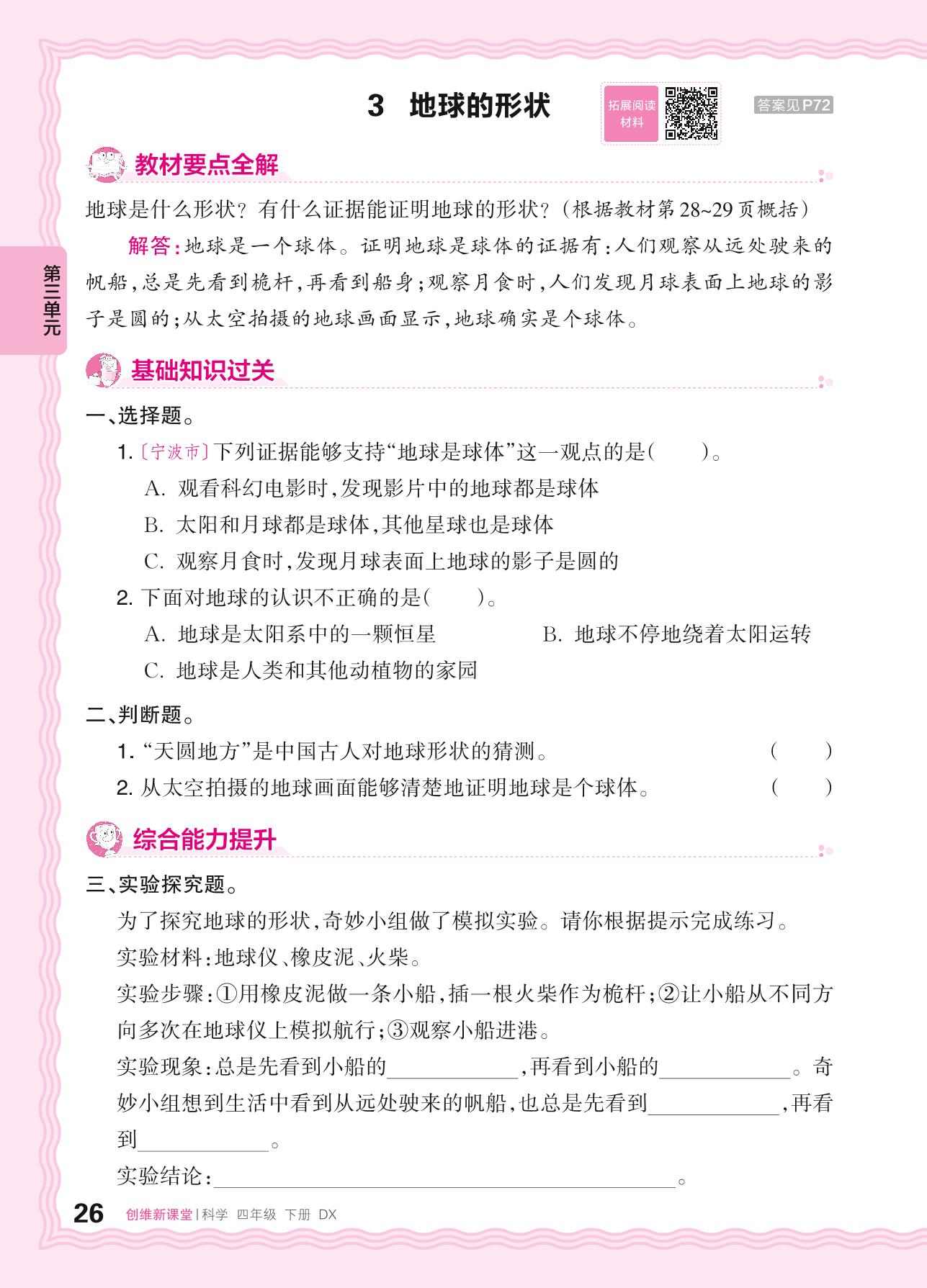 2024春下册四年级科学大象版 第三单元 太阳、地球和月球——3. 地球的形状