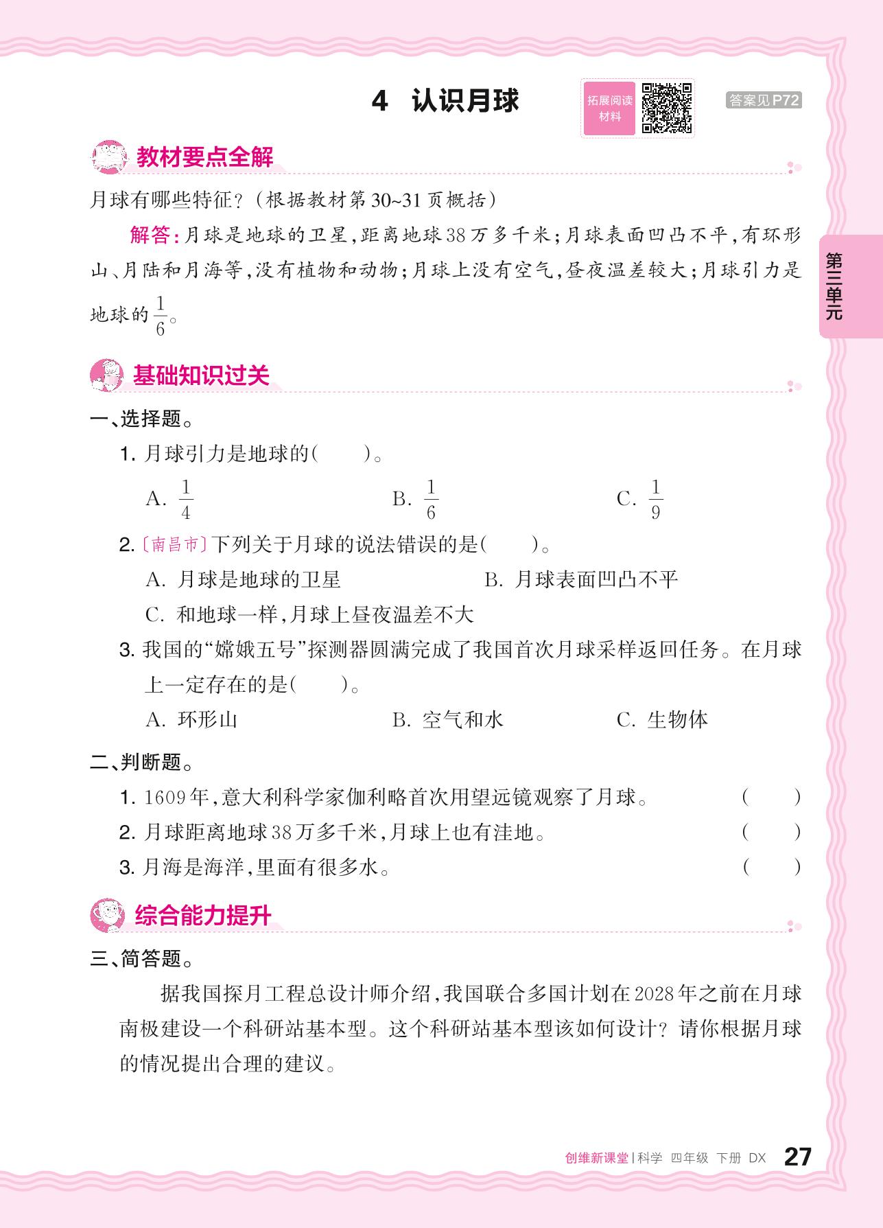 2024春下册四年级科学大象版 第三单元 太阳、地球和月球——4. 认识月球