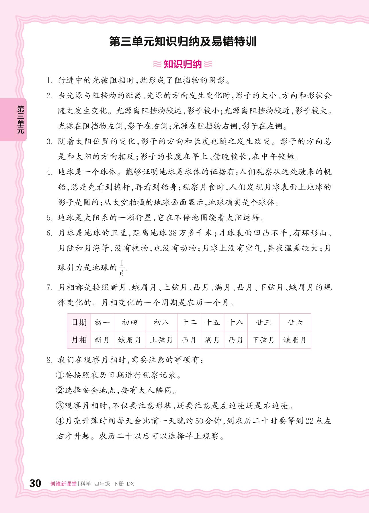2024春下册四年级科学大象版 第三单元知识归纳及易错特训