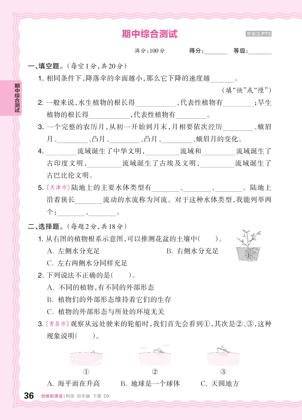2024春下册四年级科学大象版 期中综合测试