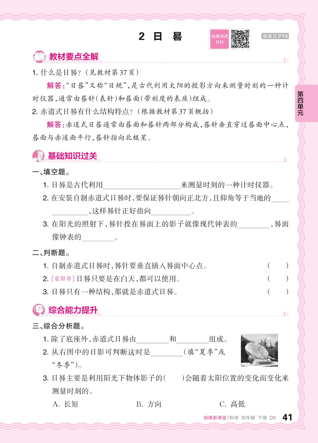 2024春下册四年级科学大象版 第四单元 精确时间的步伐——2. 日晷
