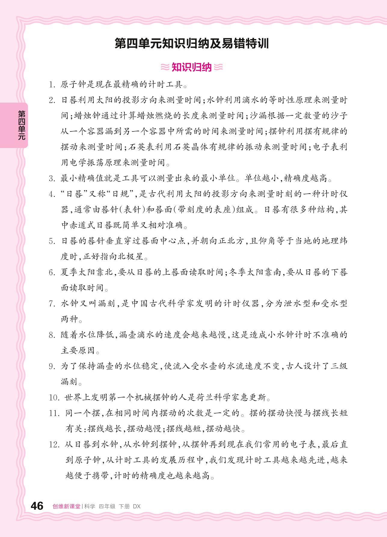 2024春下册四年级科学大象版 第四单元知识归纳及易错特训