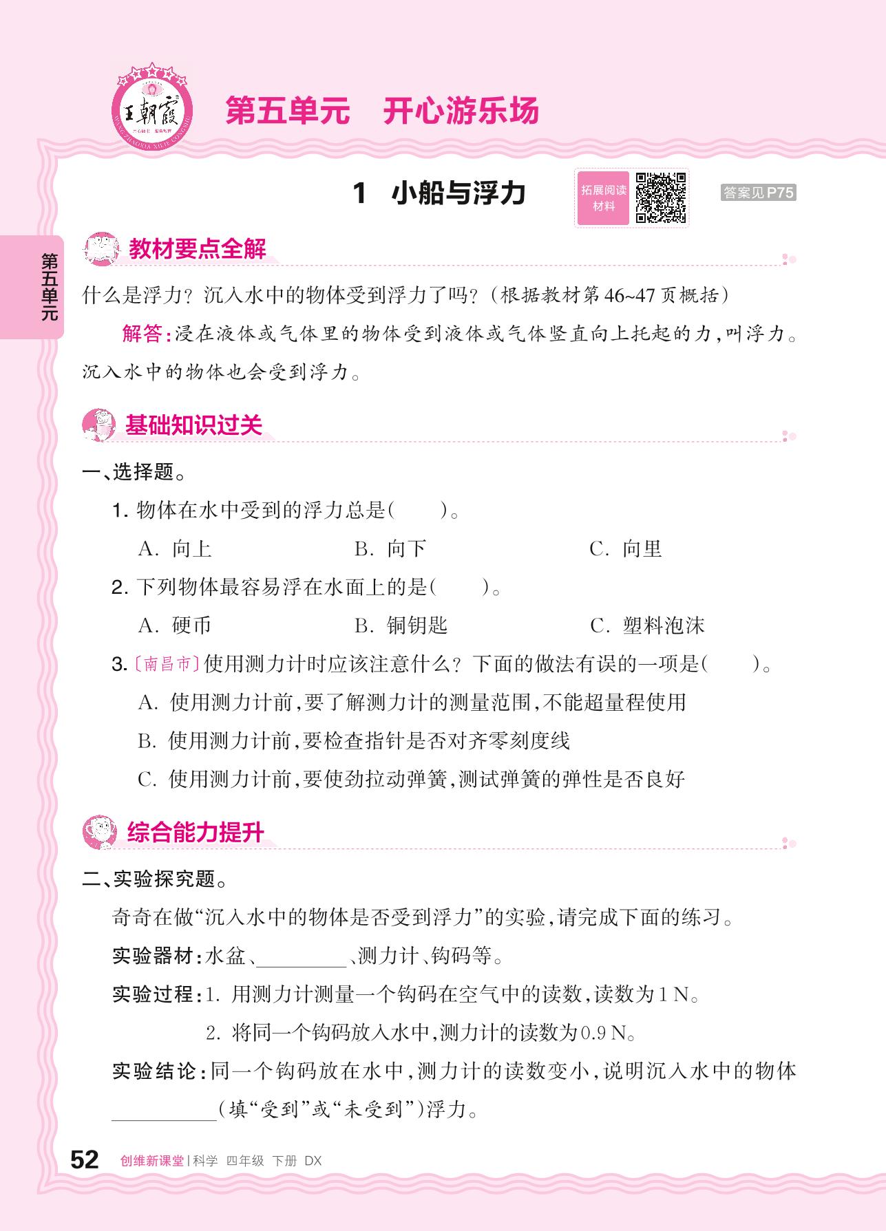 2024春下册四年级科学大象版 第五单元 开心游乐场——1. 小船与浮力