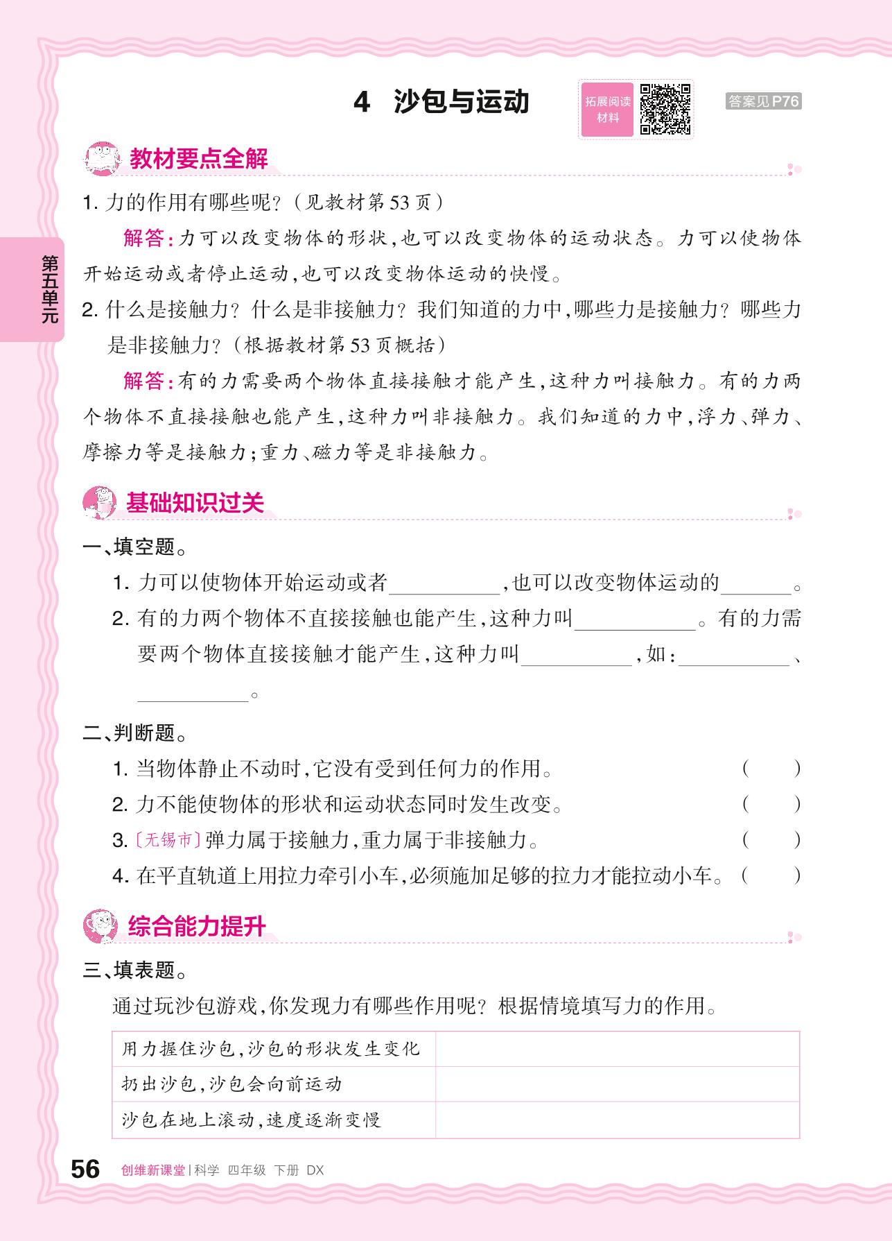 2024春下册四年级科学大象版 第五单元 开心游乐场——4. 沙包与运动