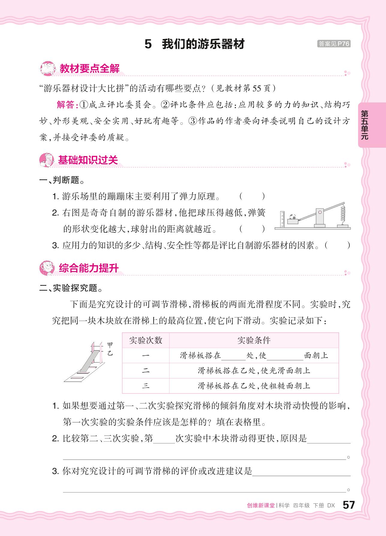 2024春下册四年级科学大象版 第五单元 开心游乐场——5. 我们的游乐器材