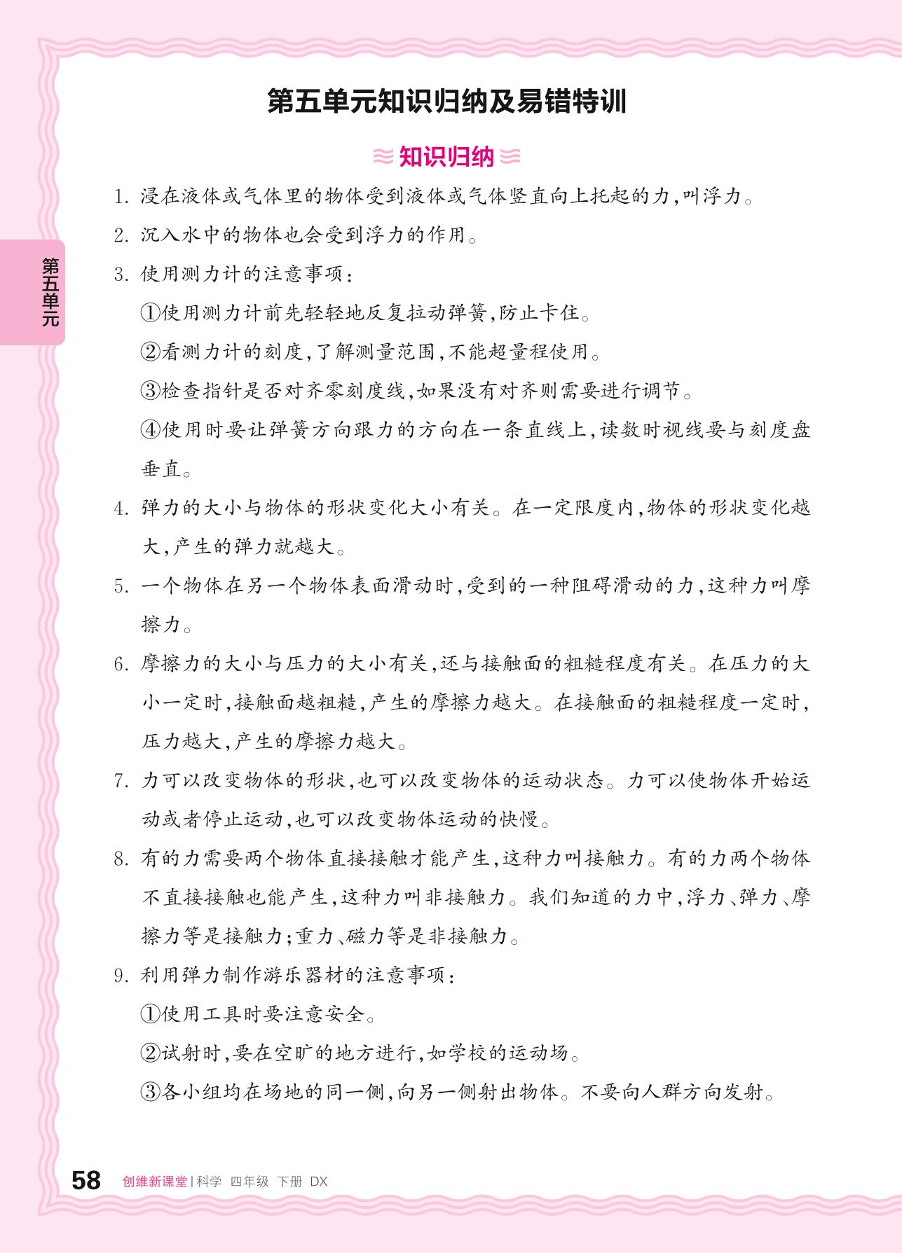 2024春下册四年级科学大象版 第五单元知识归纳及易错特训