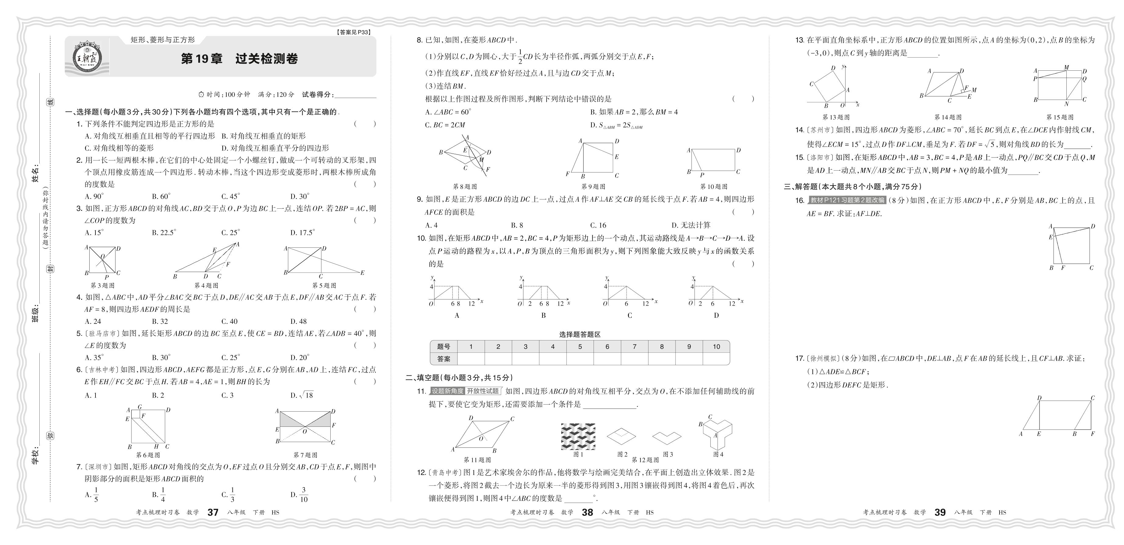 2024春下册八年级数学华师版 第19章 过关检测卷