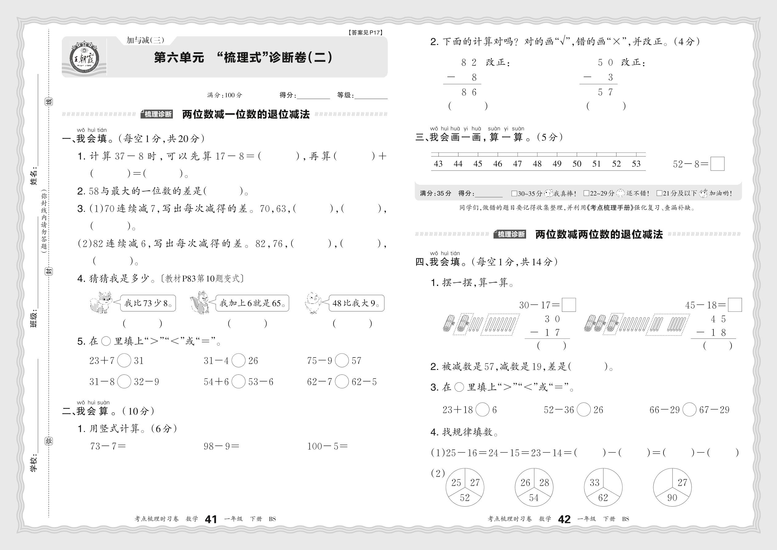 2024春下册一年级数学北师版 第六单元 “梳理式”诊断卷(二)