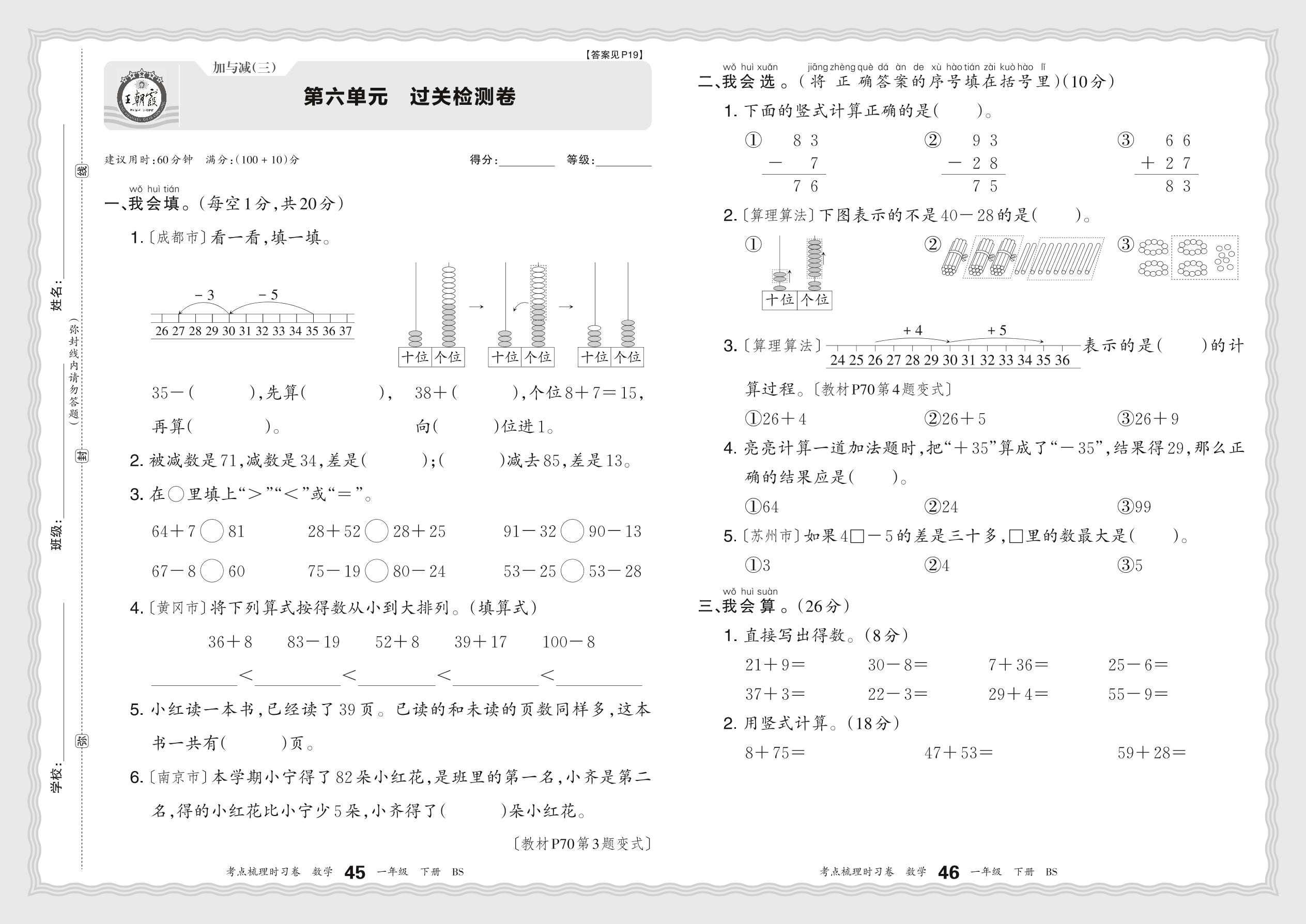 一年级数学北师版下册单元卷