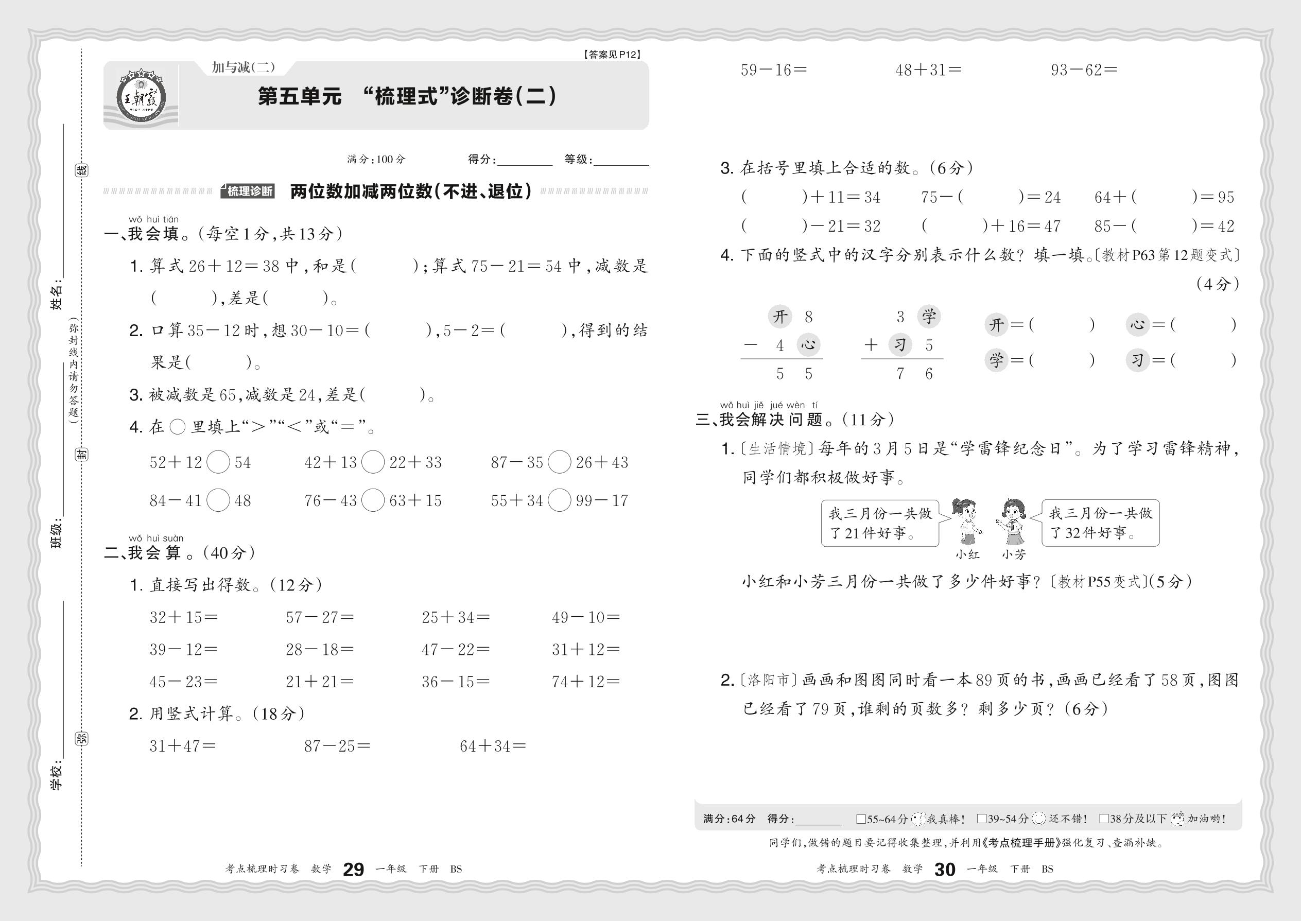 2024春下册一年级数学北师版 第五单元 “梳理式”诊断卷(二)