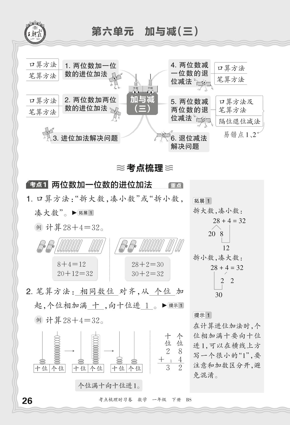 2024春下册一年级数学北师版 考点梳理手册——第六单元 加与减(三)