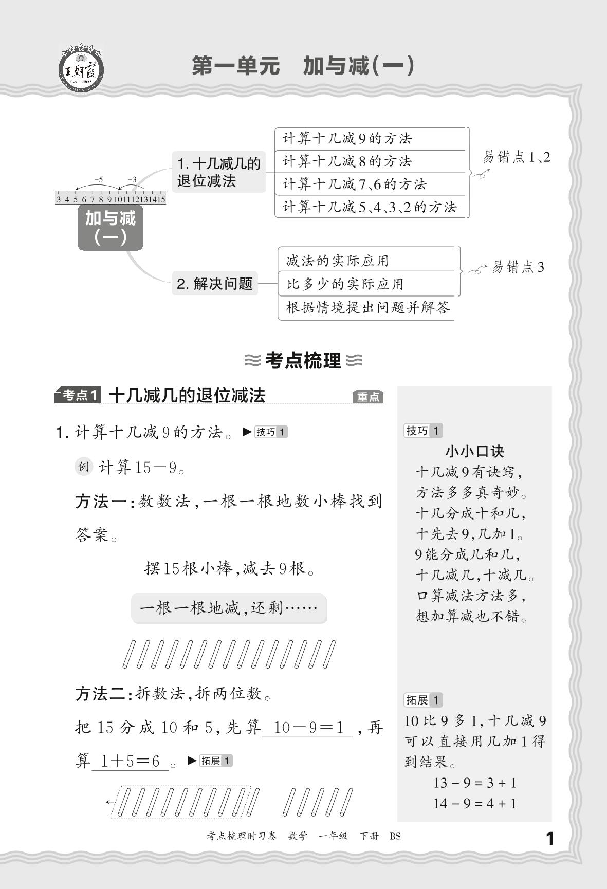 2024春下册一年级数学北师版 考点梳理手册——第一单元 加与减(一)