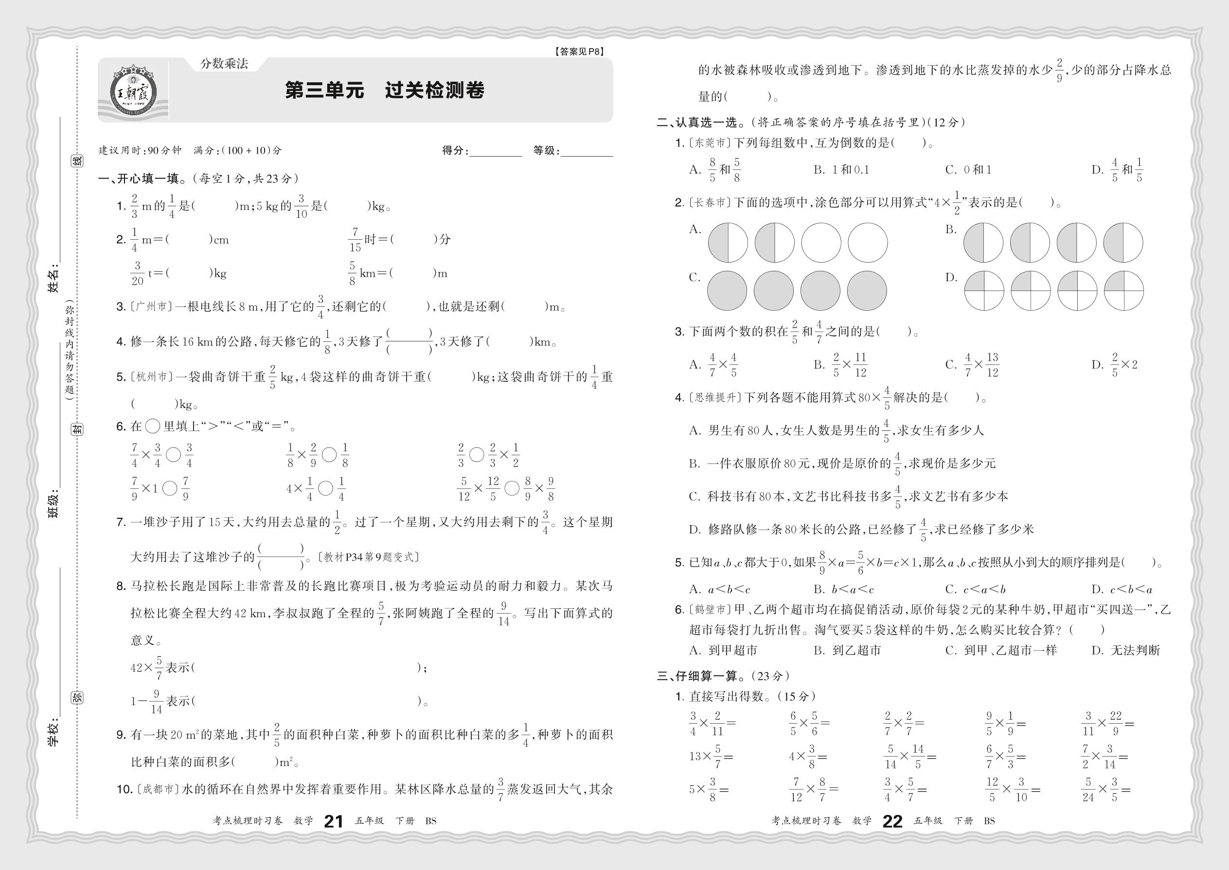 2024春下册五年级数学北师版 第三单元 过关检测卷
