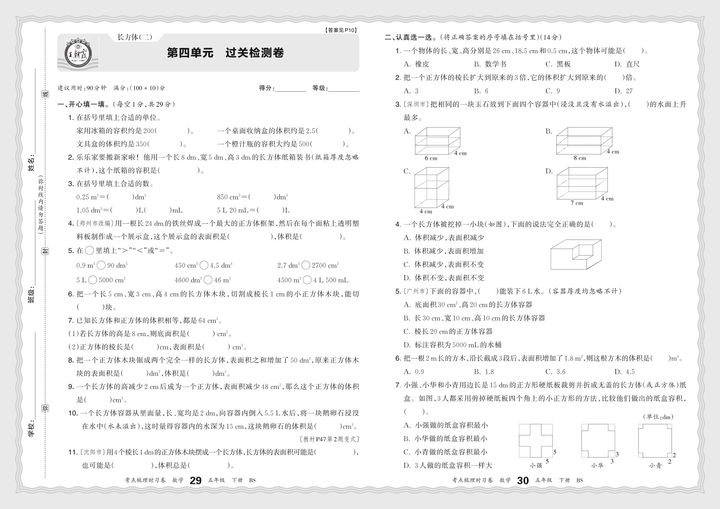 2024春下册五年级数学北师版 第四单元 过关检测卷