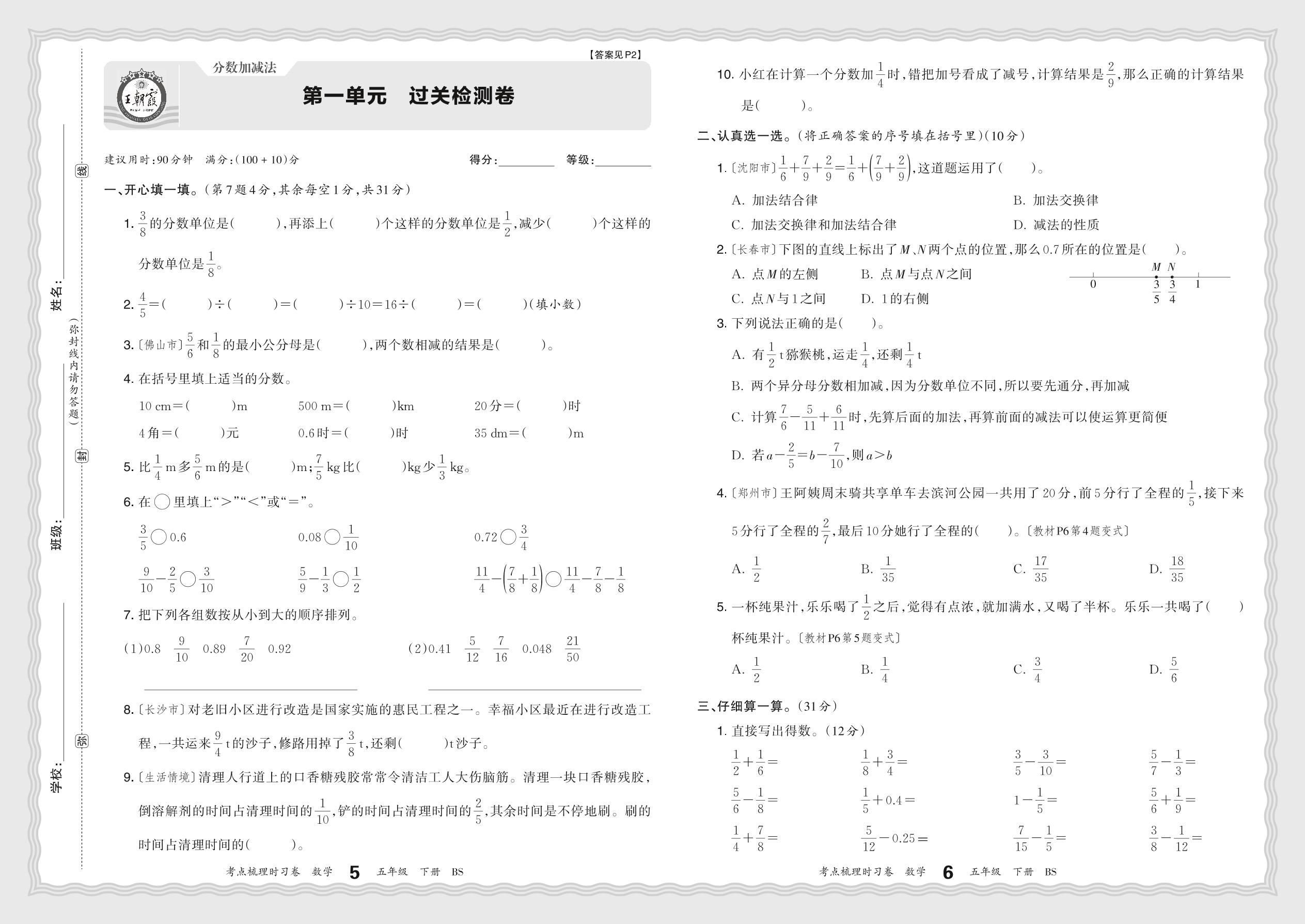2024春下册五年级数学北师版 第一单元 过关检测卷