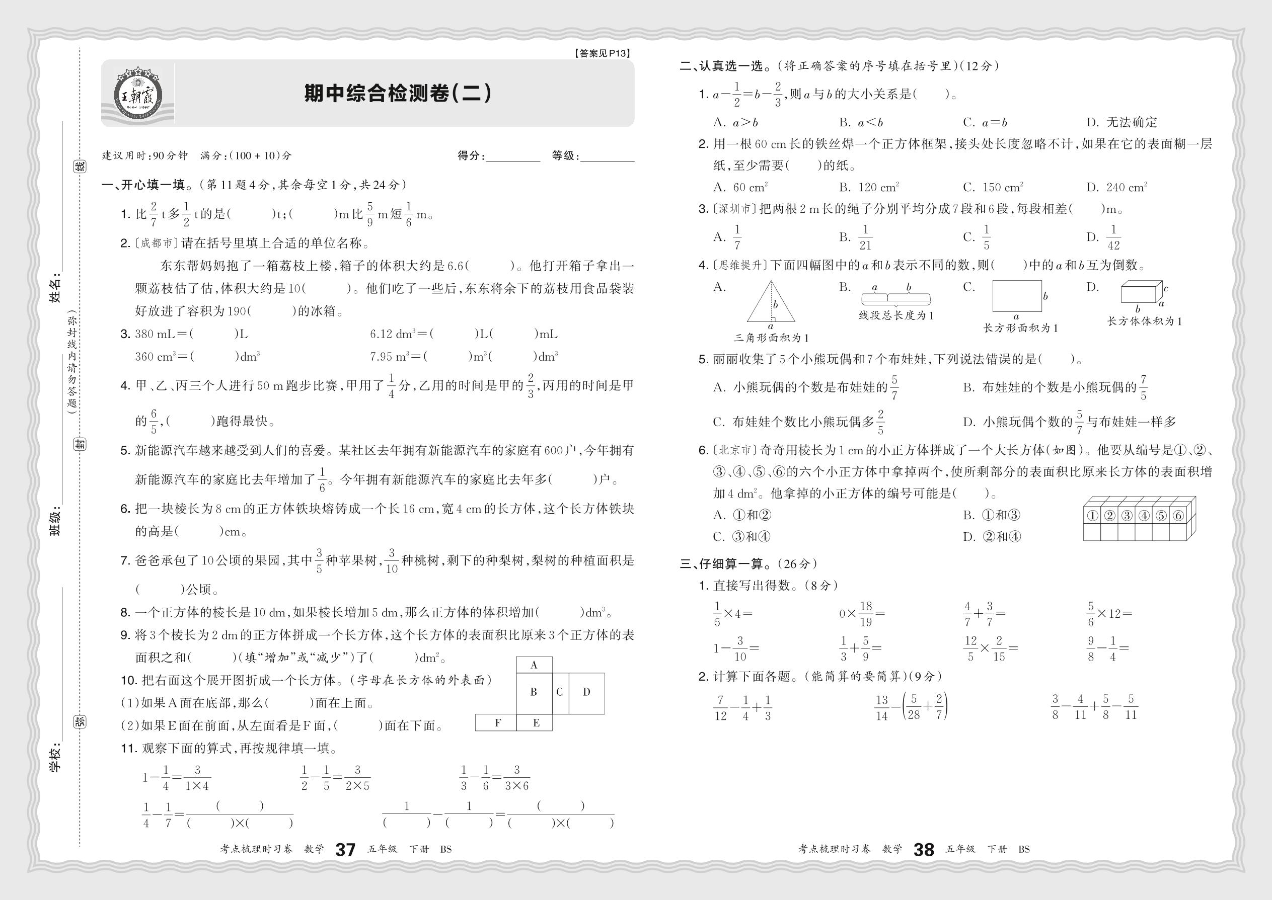 2024春下册五年级数学北师版 期中综合检测试卷(二)