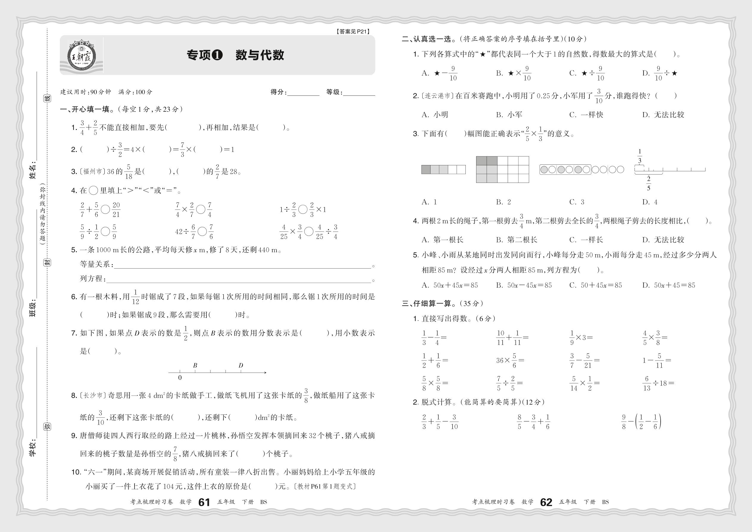 2024春下册五年级数学北师版 期末专项卷KD版·数与代数【1】