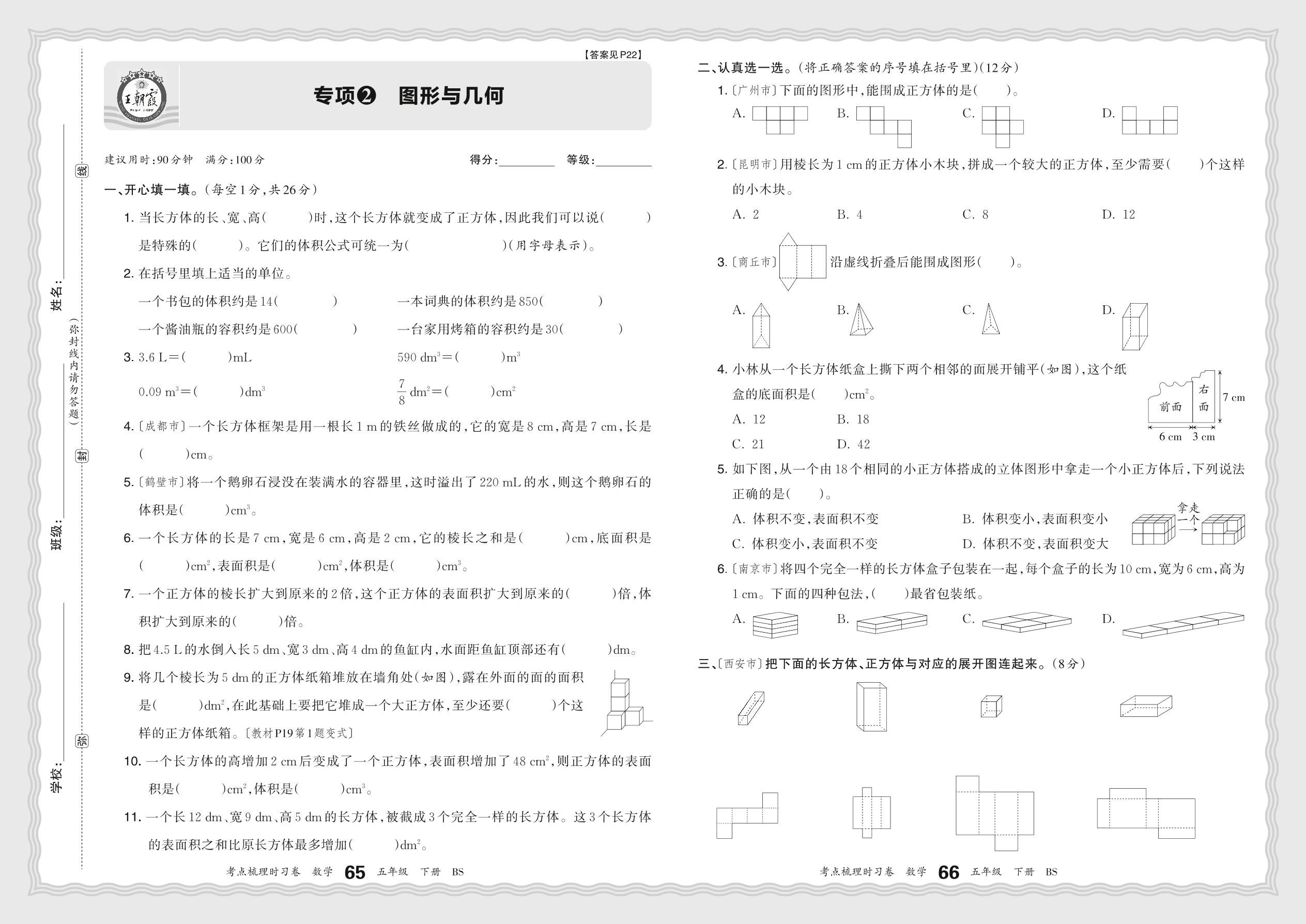 2024春下册五年级数学北师版 期末专项卷KD版·图形与几何【2】