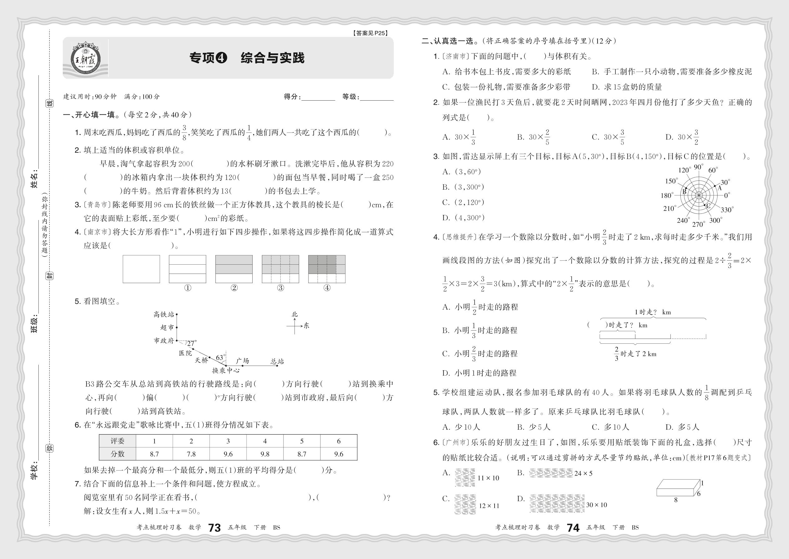 2024春下册五年级数学北师版 期末专项卷KD版·综合与实践【4】