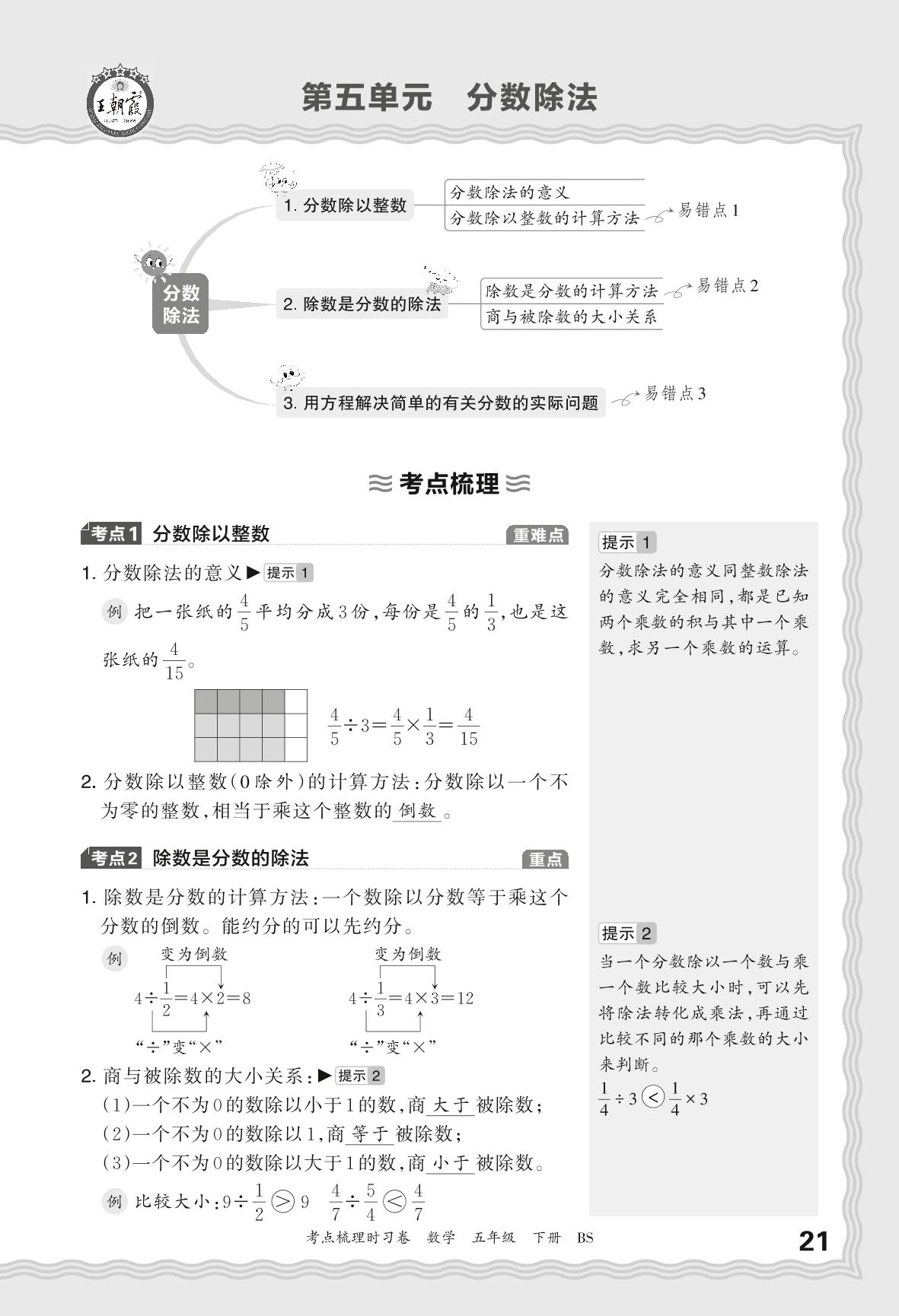2024春下册五年级数学北师版 考点梳理手册——第五单元 分数除法