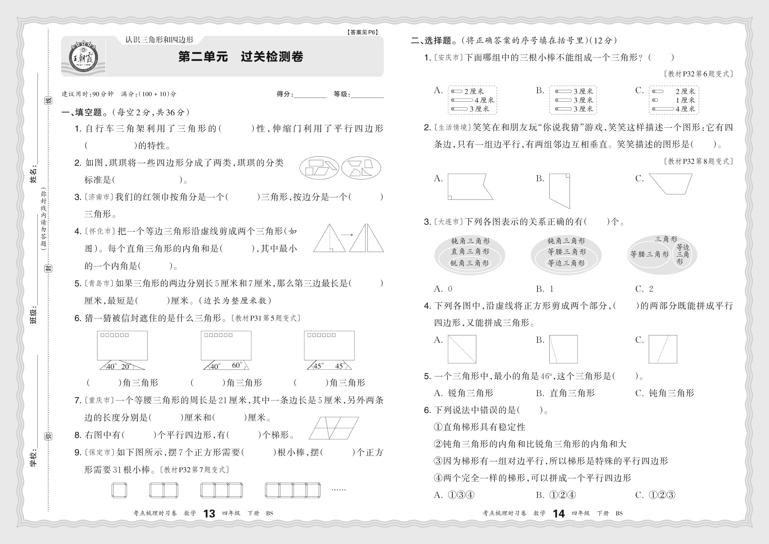 2024春下册四年级数学北师版 第二单元 过关检测卷