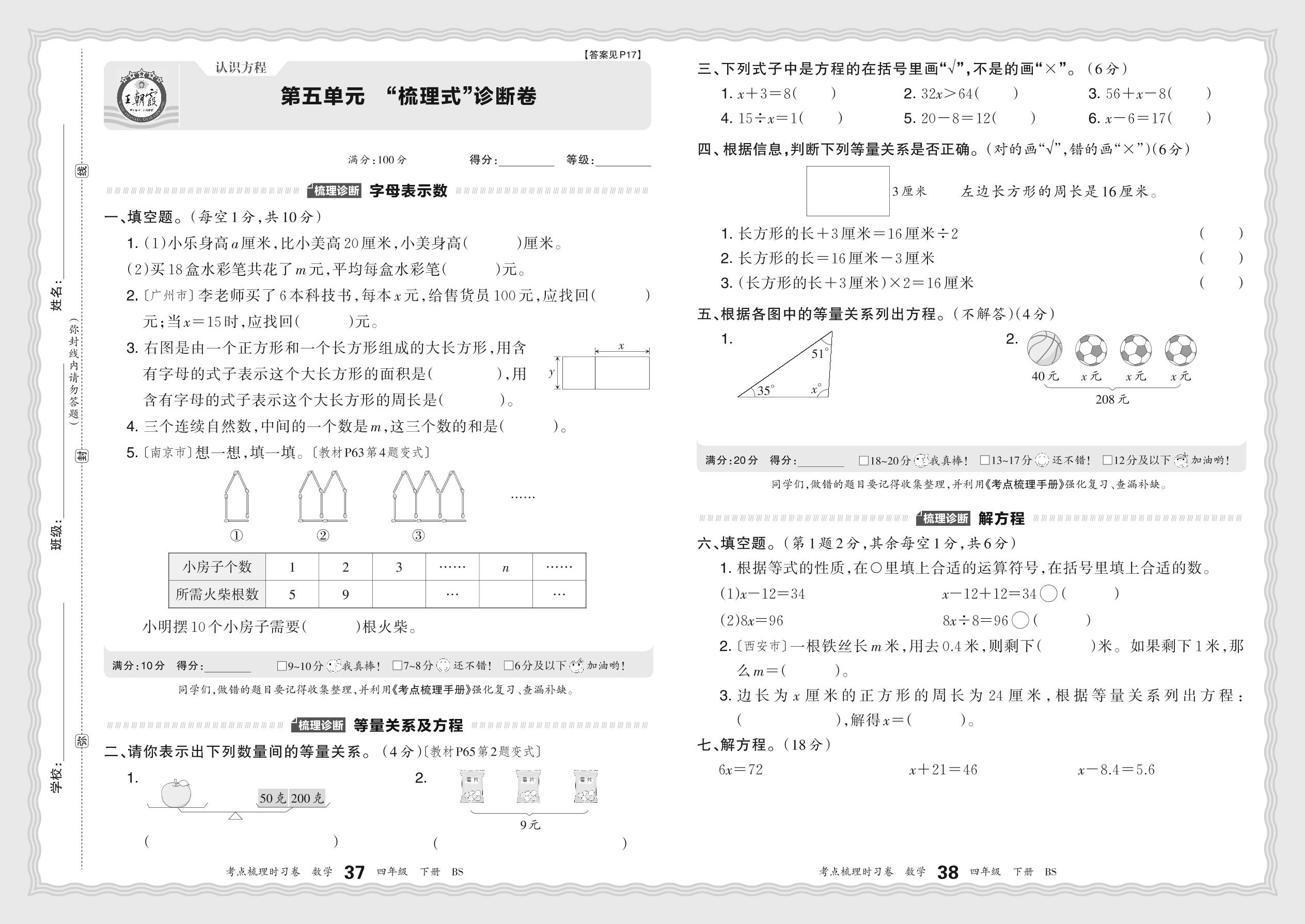 2024春下册四年级数学北师版 第五单元 “梳理式”诊断卷