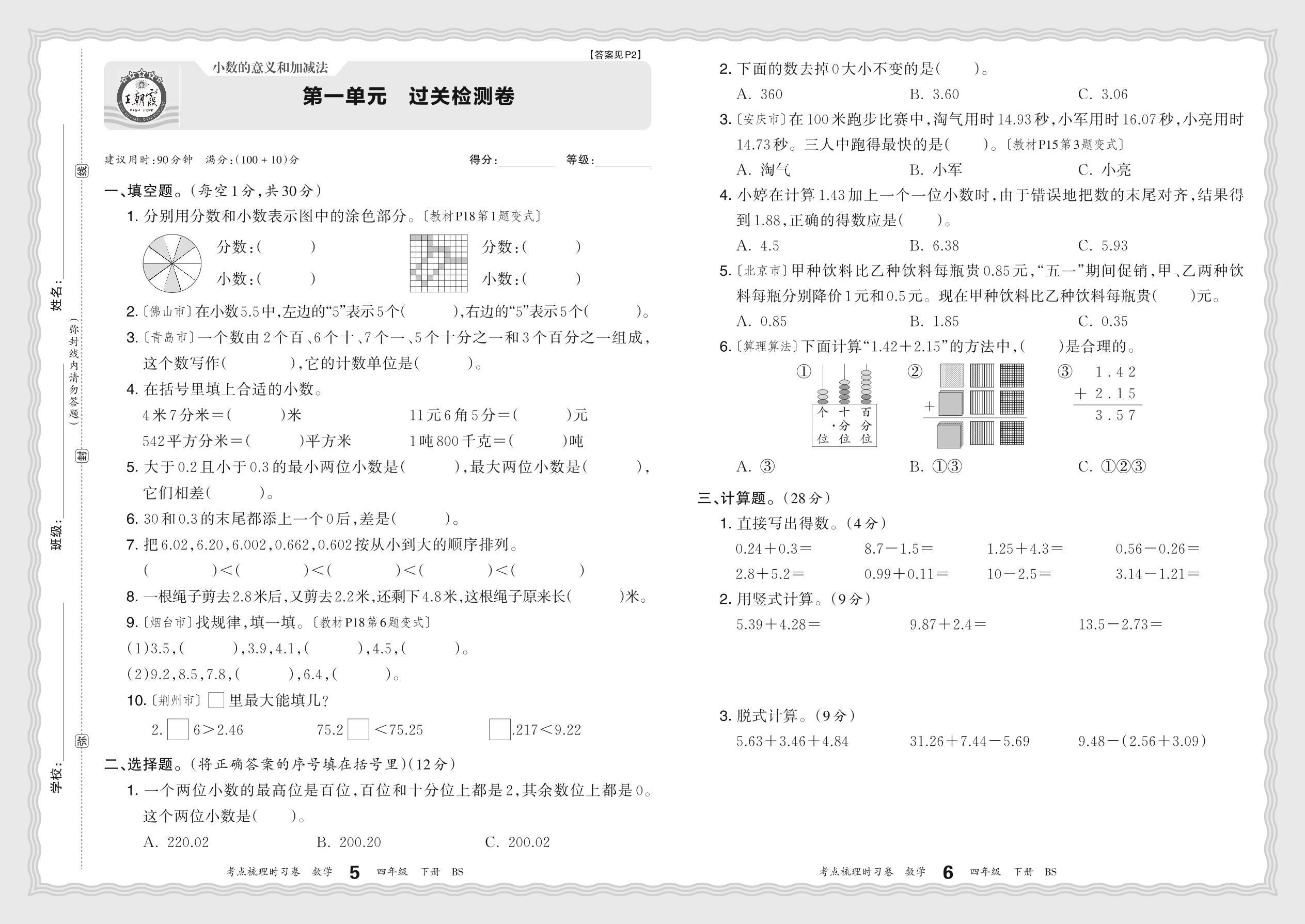 四年级数学北师版下册单元卷