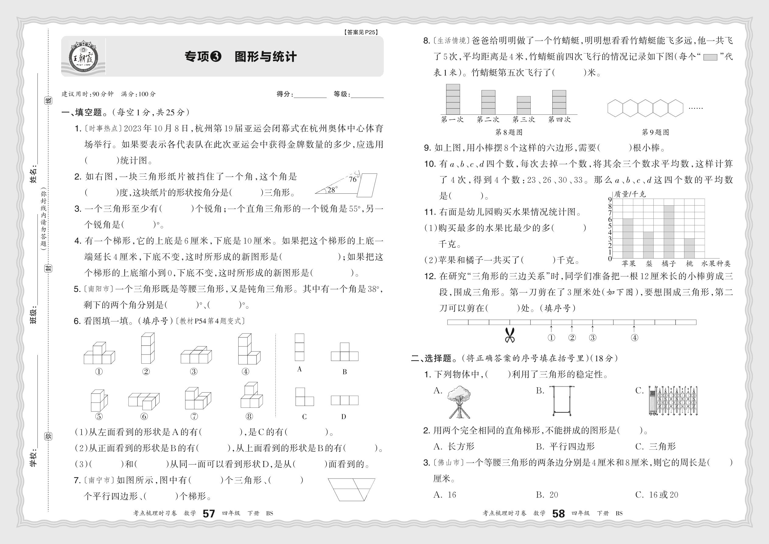 2024春下册四年级数学北师版 期末专项卷KD版·图形与统计【3】