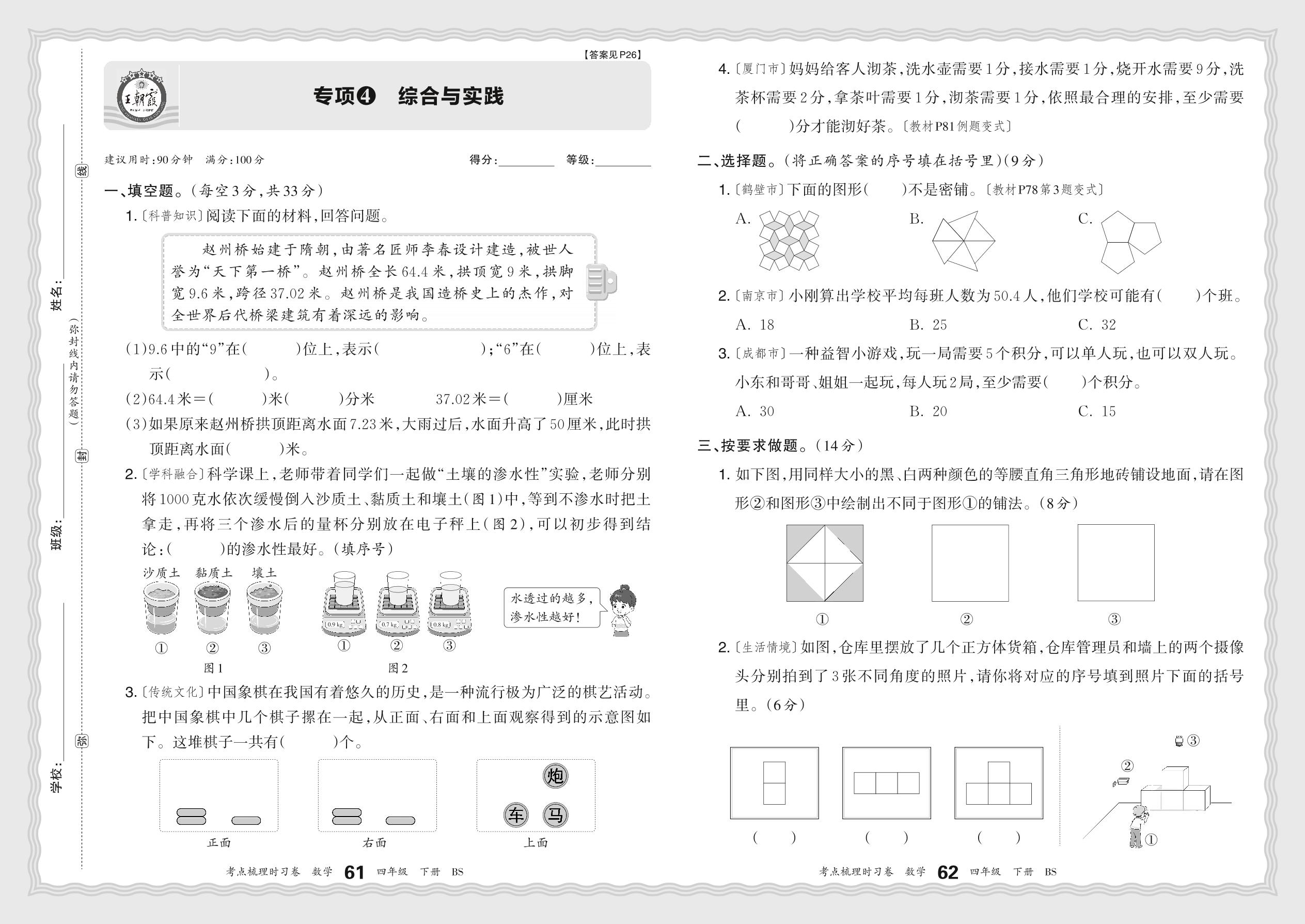 2024春下册四年级数学北师版 期末专项卷KD版·综合与实践【4】