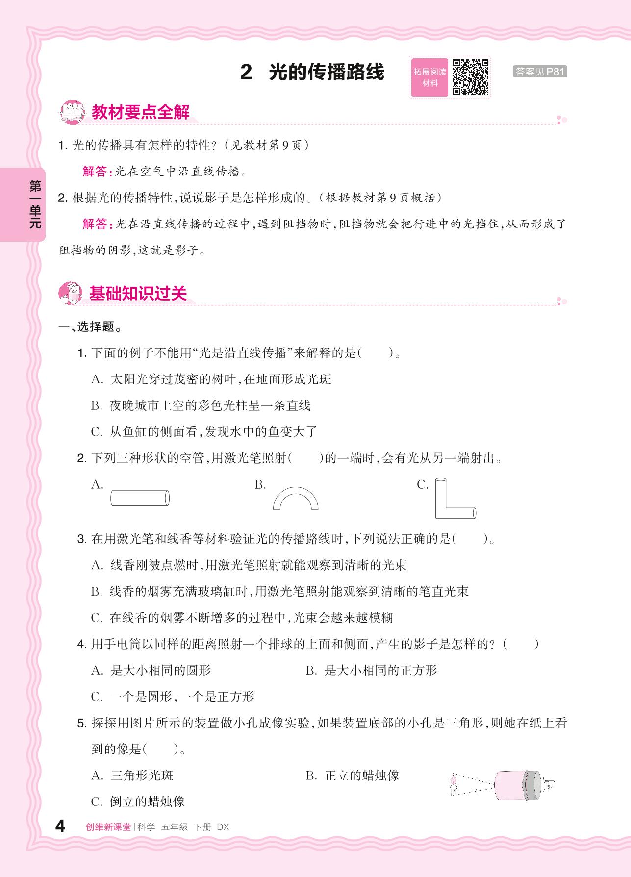 2024春下册五年级科学大象版 第一单元 探寻光的路线——2. 光的传播路线