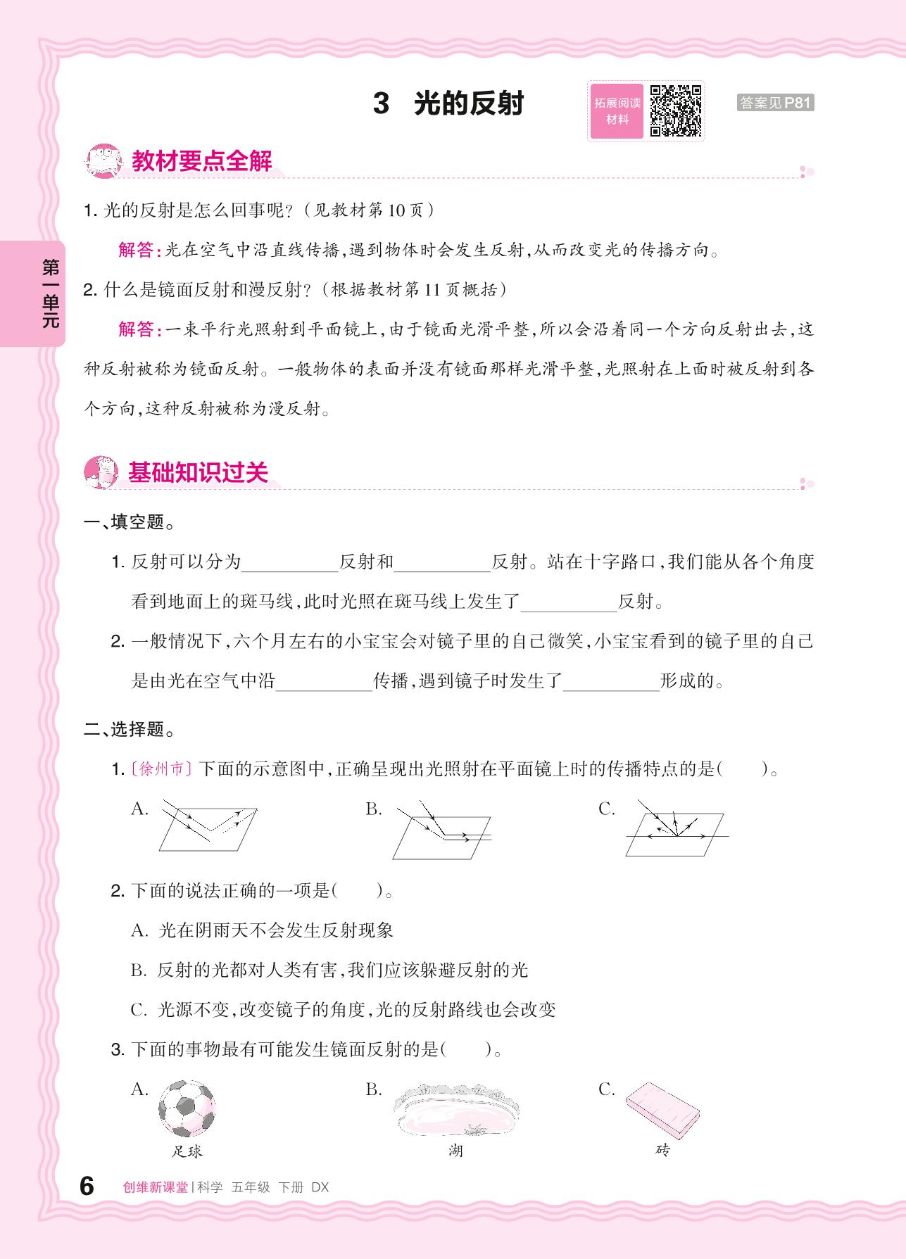 2024春下册五年级科学大象版 第一单元 探寻光的路线——3. 光的反射