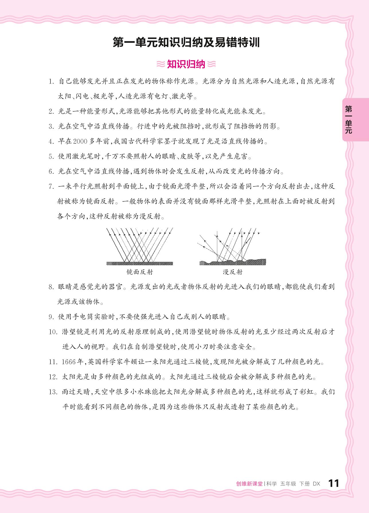 2024春下册五年级科学大象版 第一单元知识归纳及易错特训