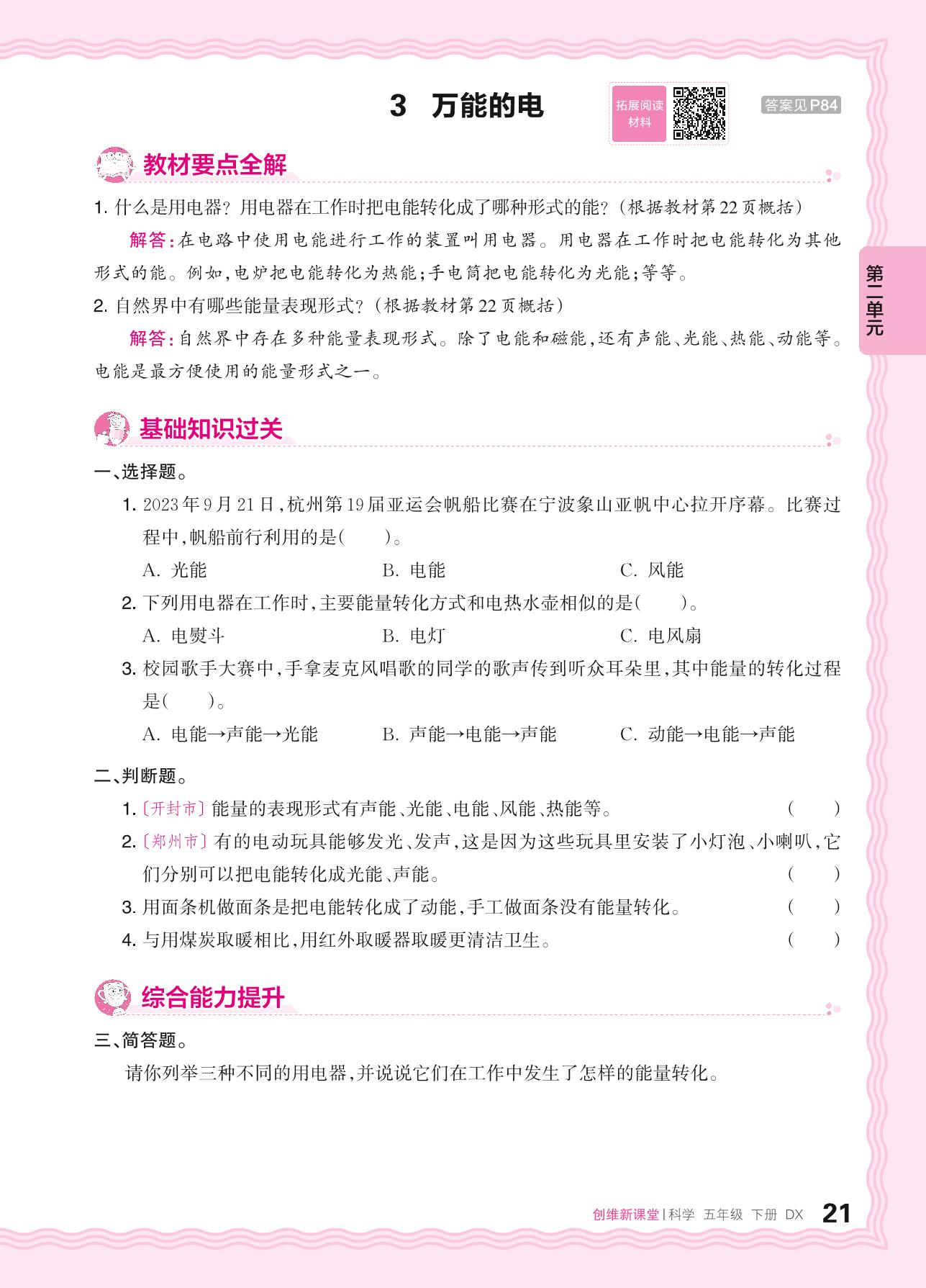 2024春下册五年级科学大象版 第二单元 能量——3. 万能的电