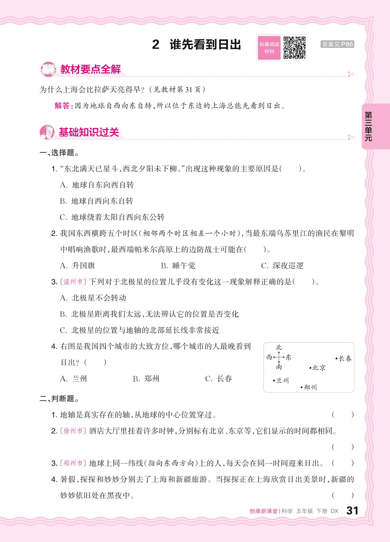 2024春下册五年级科学大象版 第三单元 转动的地球——2. 谁先看到日出