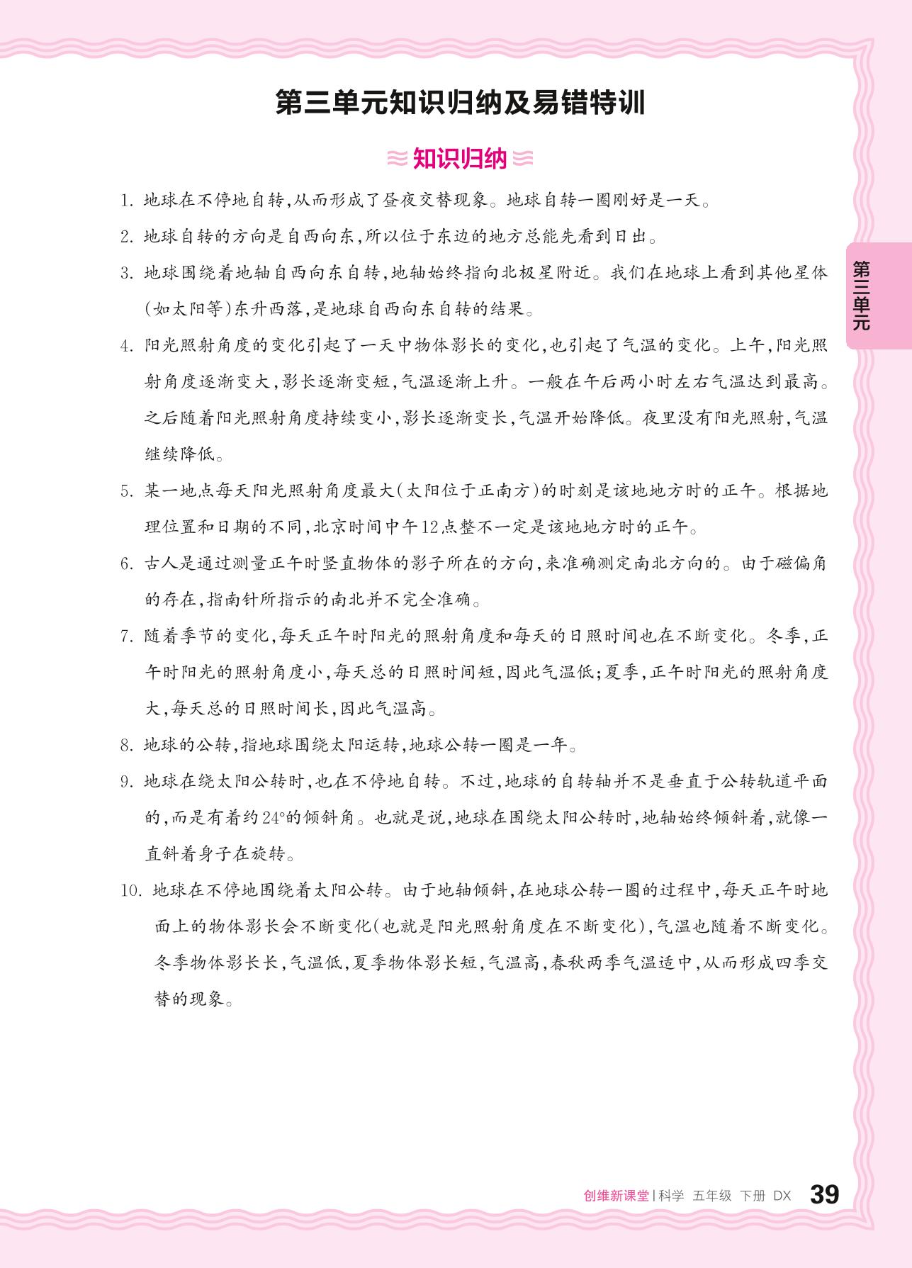 2024春下册五年级科学大象版 第三单元知识归纳及易错特训