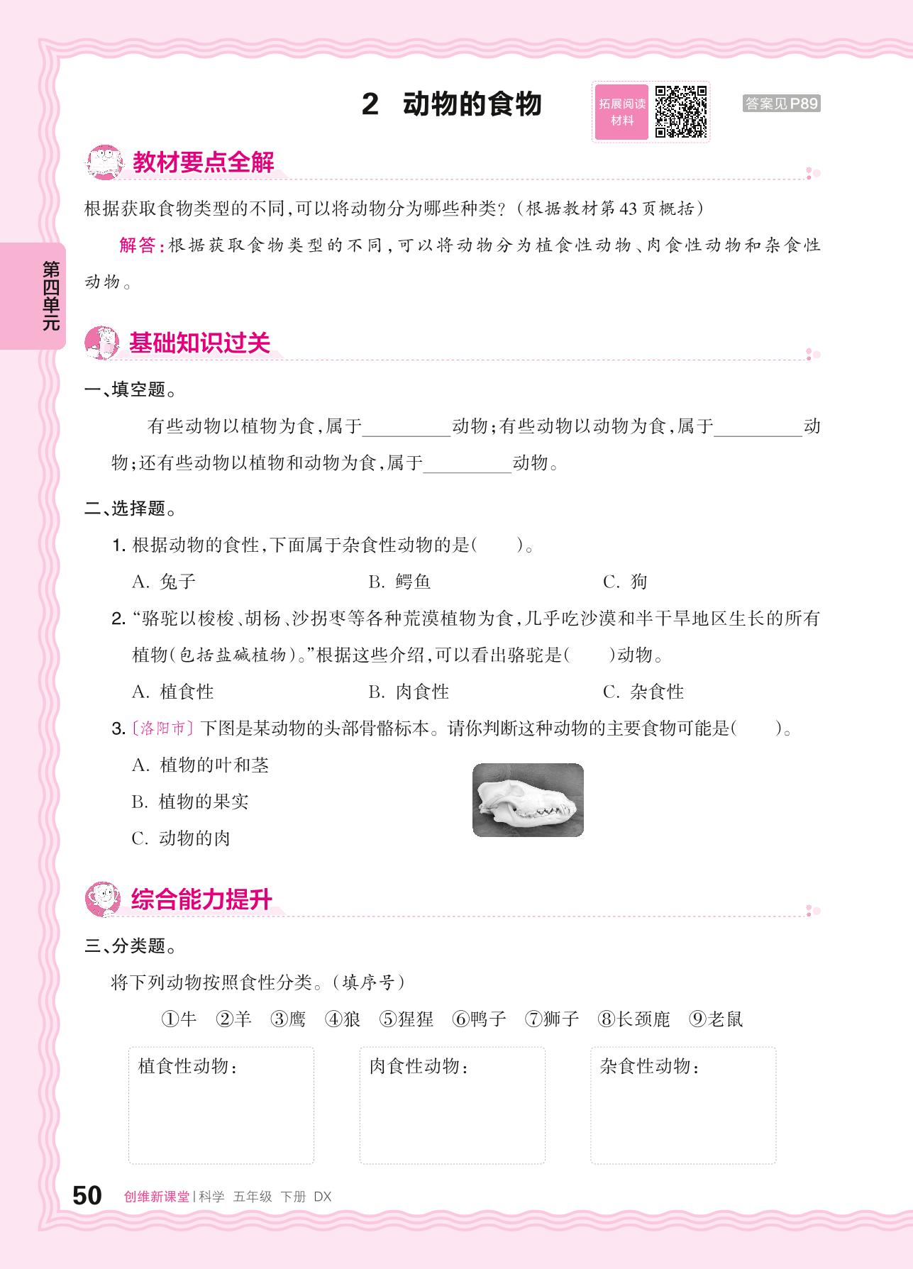 2024春下册五年级科学大象版 第四单元 食物与能量——2. 动物的食物