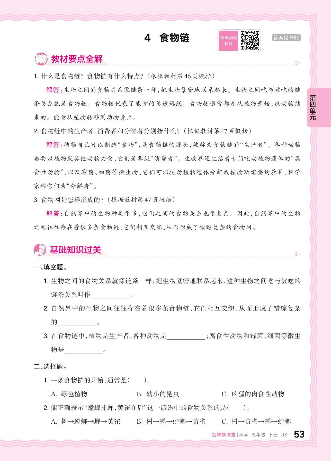 2024春下册五年级科学大象版 第四单元 食物与能量——4. 食物链